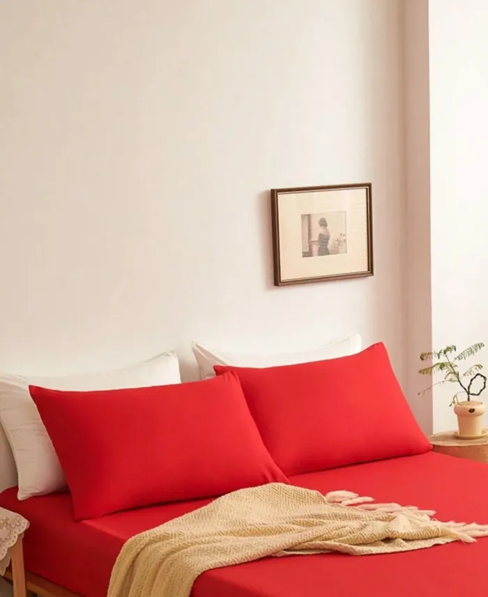 Ce lot de deux taies d’oreiller rouge 50×70 cm, confectionnées en 100 % coton avec une densité de 57 fils, allie douceur, confort et résistance. Leur conception respirante et facile d’entretien en fait un choix idéal pour un linge de lit durable et agréable au quotidien.