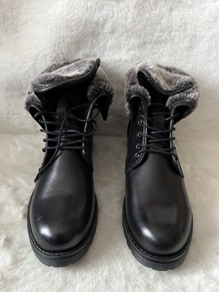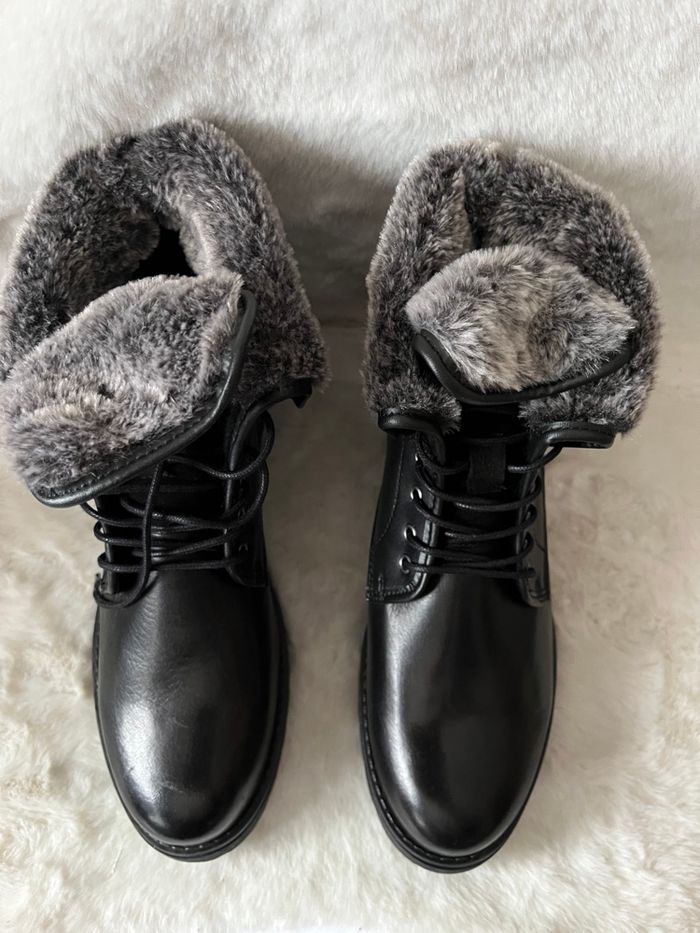 Bottines noires en cuir et fourrure synthétique San Marina pointure 41, modulables - photo numéro 3