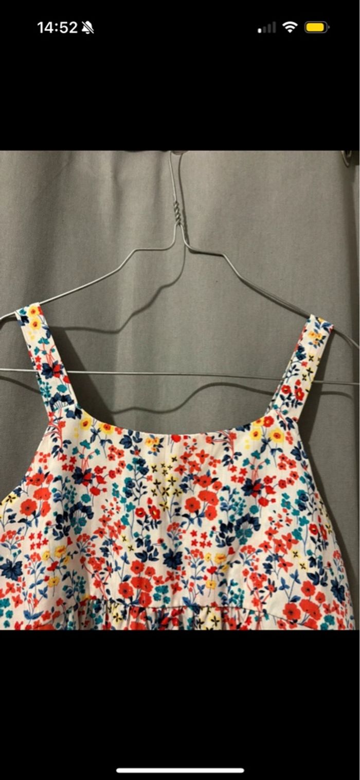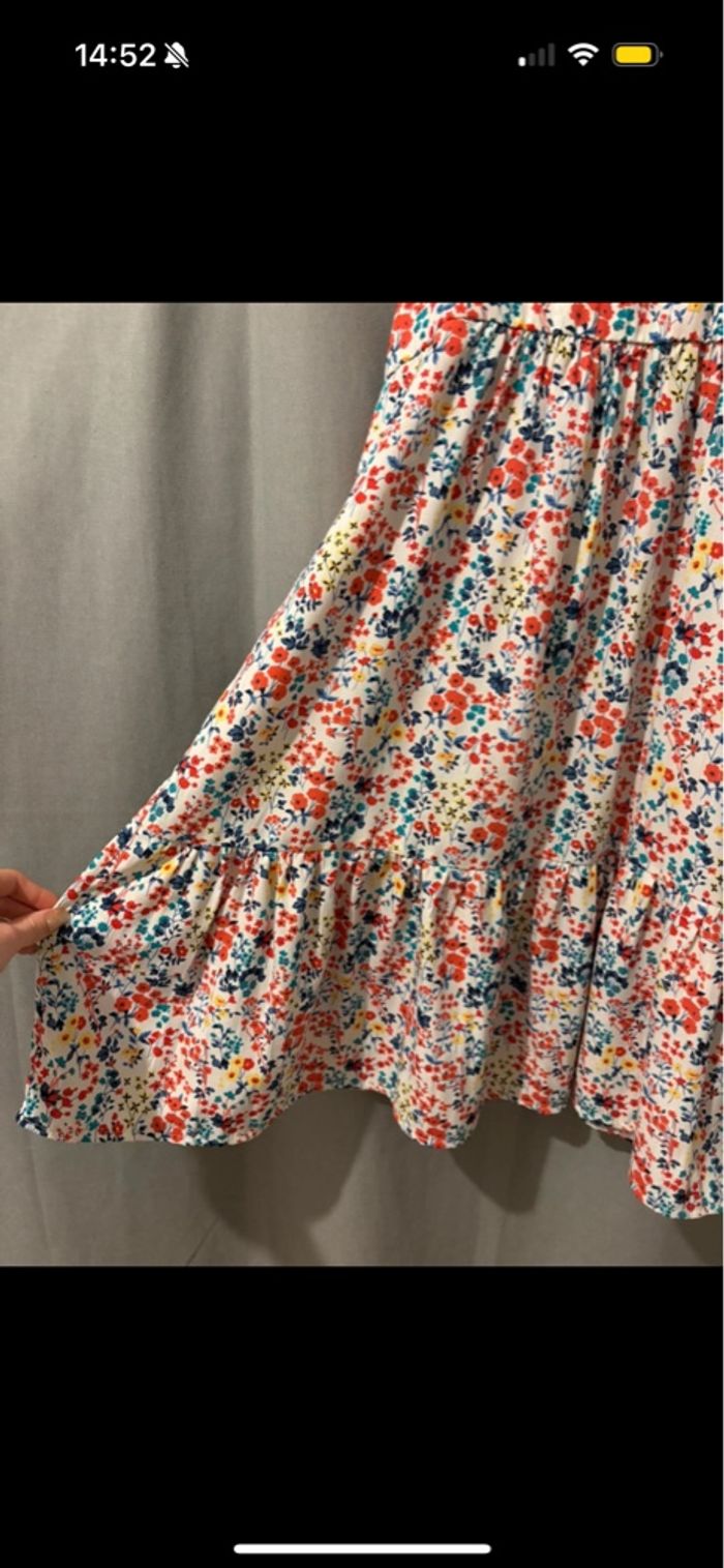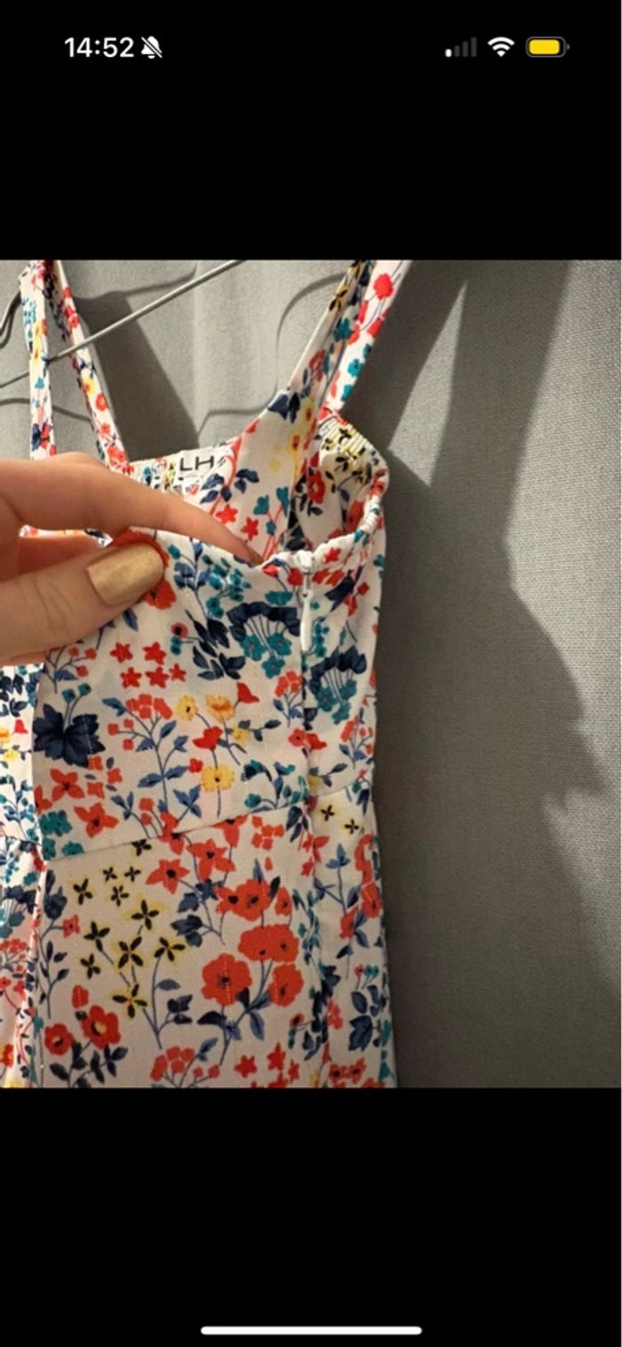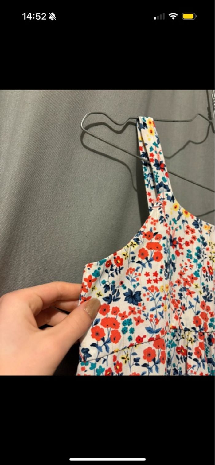 Hello, je vends cette magnifique robe fleurie pour l’été. C’est une robe fleuries, multicolore avec bretelles. Il y a une fermeture sur le côté gauche. Elle vient de chez La Halle en 10 ans. À été portée 1 fois seulement à un mariage comme neuve. Elle arrive en dessous des genoux.