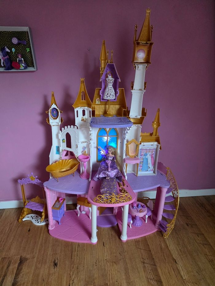 - Composition du lot : Château avec de nombreux éléments décoratifs et un feu d'artifice et une poupée Raiponce qui fait de la musique en cadeau.