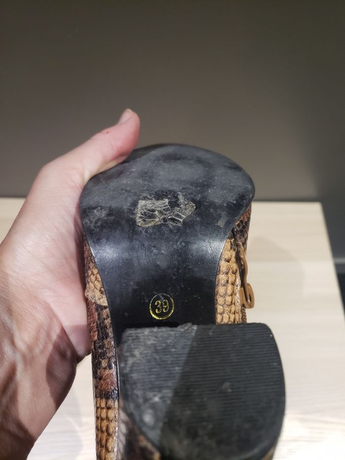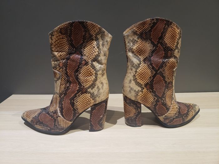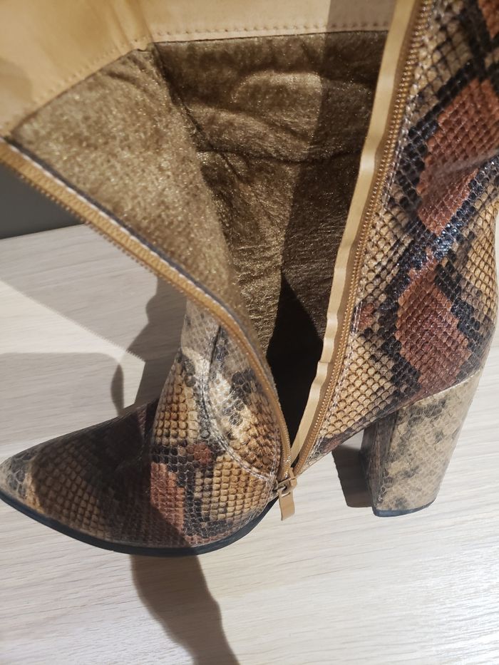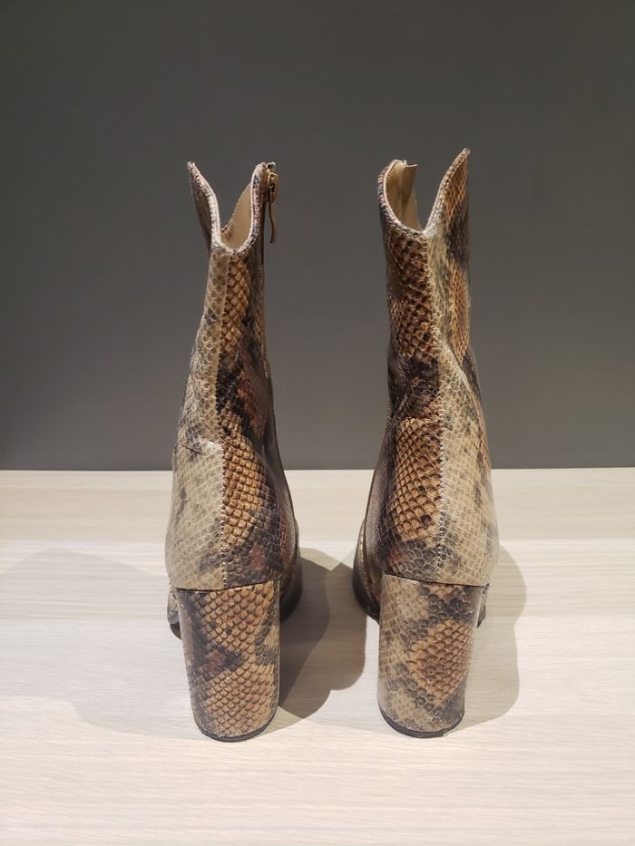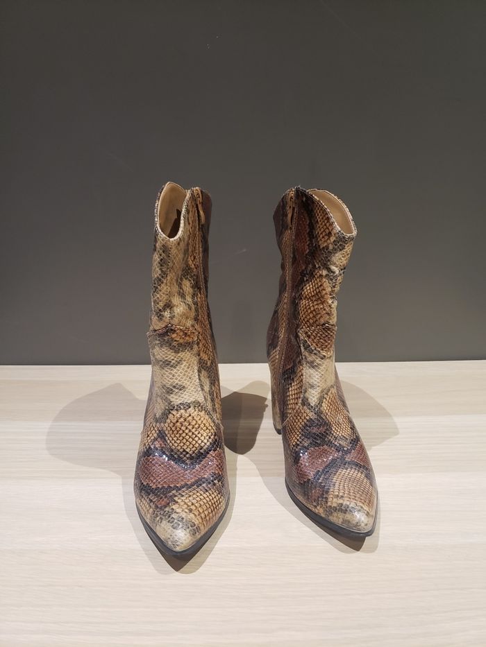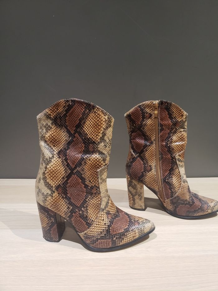 Bottines low boots imitation python, stables et bien chaudes (intérieur fourré), une légère éraflure sur un talon (peu visible).