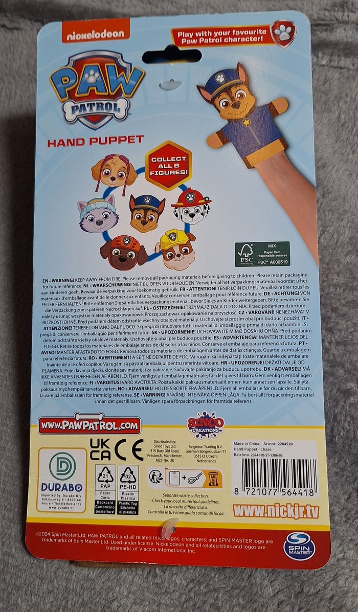 Marionnette à main Chase pat patrouille 28 cm neuve