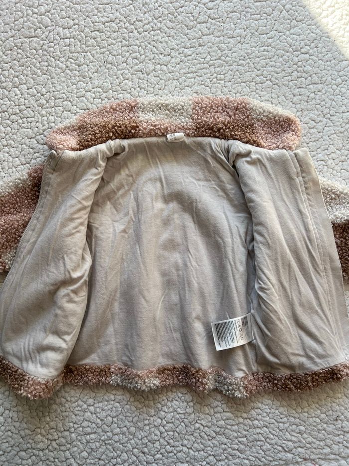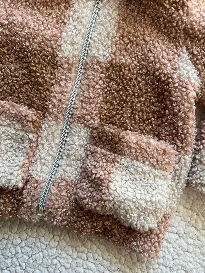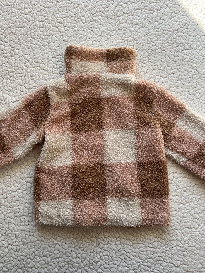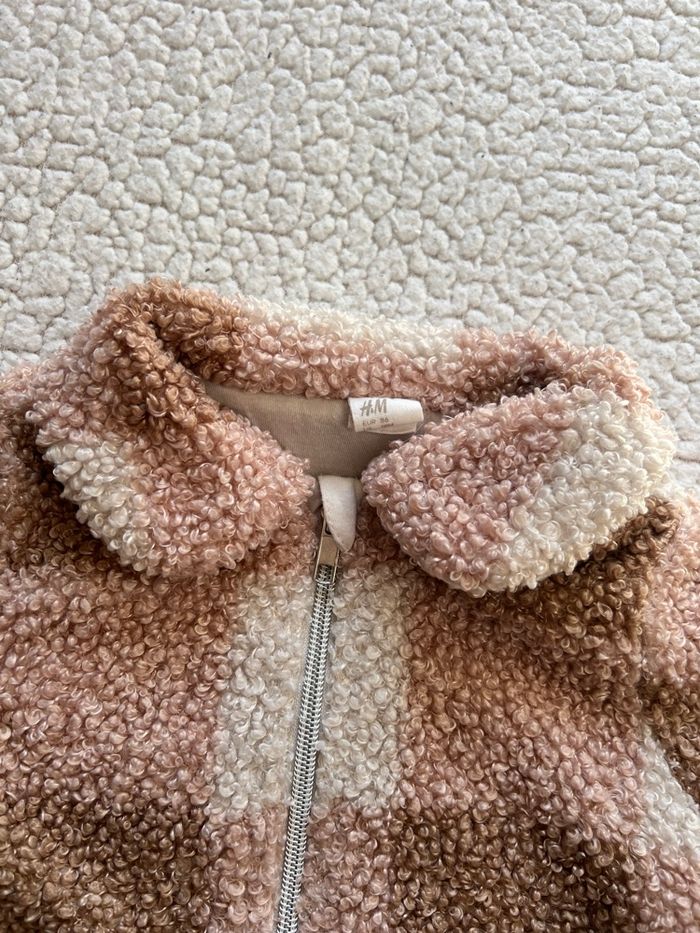 Veste beige et rose à carreaux, en tissu bouclette. Ouverture avec fermeture à glissière, et deux vraies poches. Poignets élastiqués. Taille 18 mois / 86 cm. En très bon état, portée souvent. Marque H&M. Poids article seul : 250g. N’hésitez pas à me poser des questions, me demander des photos supplémentaires 👧🏼