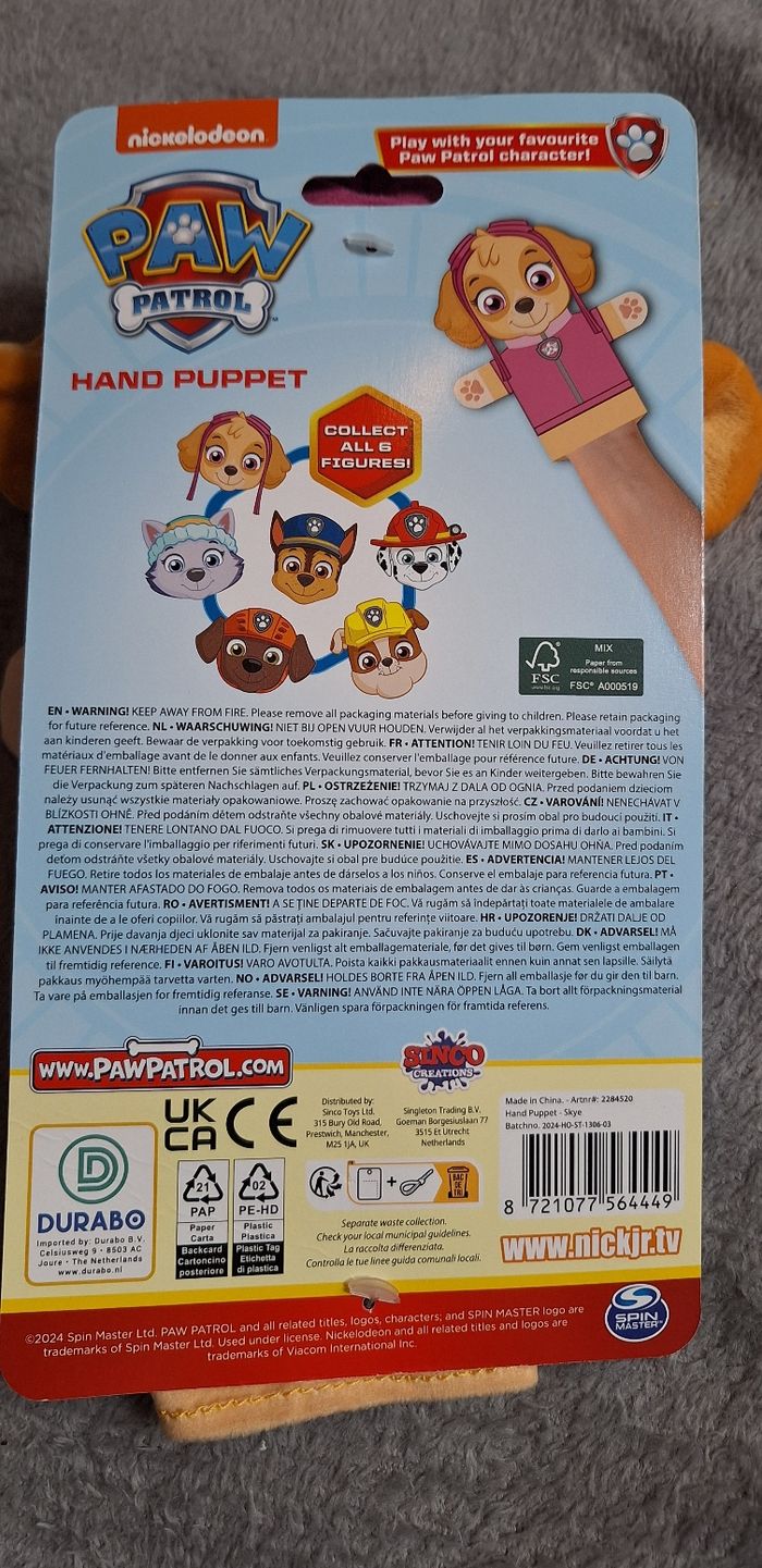 Marionnette à main Stella pat patrouille 28 cm neuve