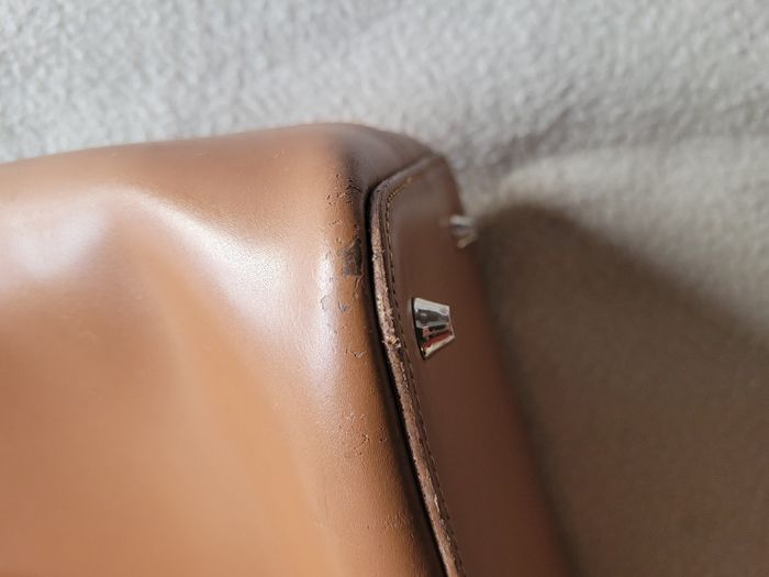 Sac à main lancaster En très bon état, à servi, de légères traces (mises sur photo)en dessous et lanières très légèrement marquées Couleur marron camel Cuir rigide Grande capacité 41x26x15 cm