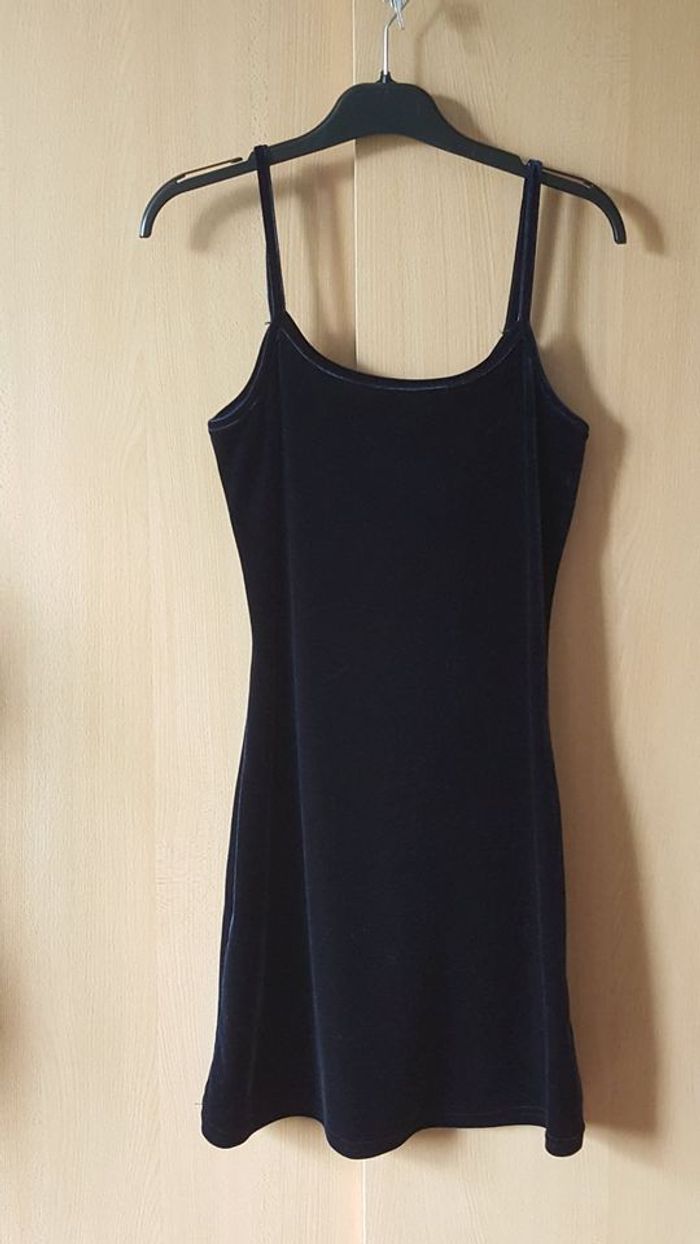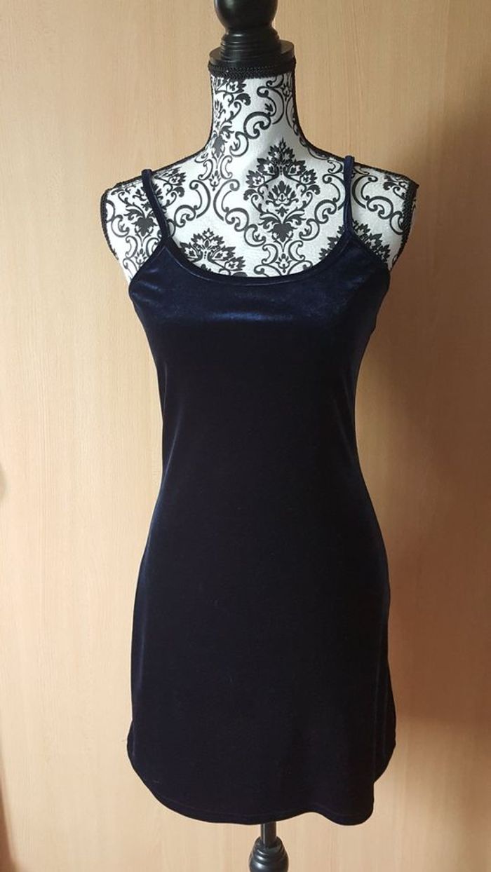 Joli robe à bretelle Bleu nuit (matière velours) porté 1fois en très bon état.