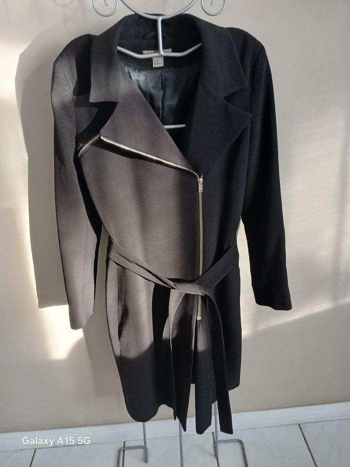 Trench manteau long en tres bon etat peu porté Taille 42 Marque hm Longueur totale 98cm Épaulette de chaque coté Poches et fermetures nikel