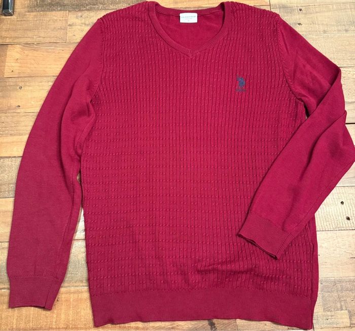 pull homme, pull bordeaux, pull col v, us polo assn, polo homme, pull classique, pull élégant, pull casual, pull hiver, pull automne, maille homme, vêtement homme, taille L