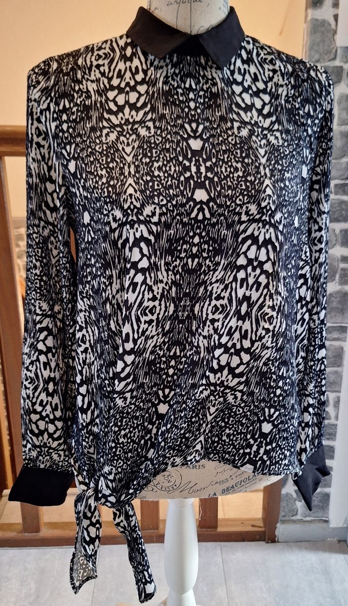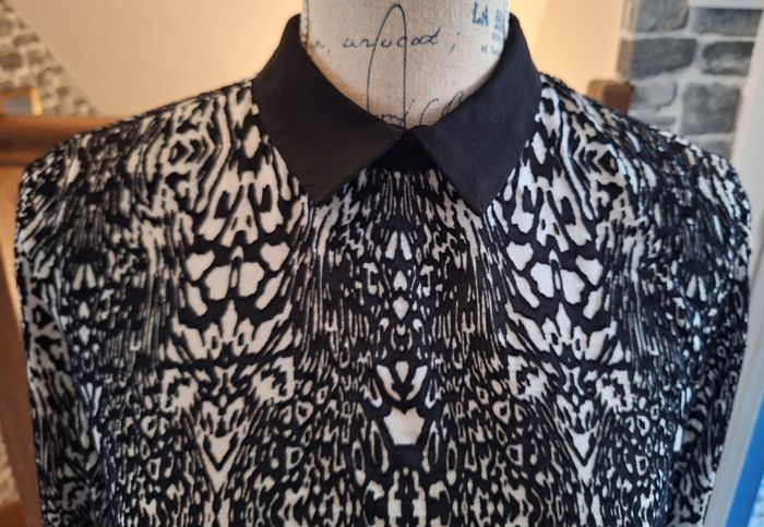 Superbe blouse noire et blanche boutonnée au dos - photo numéro 1