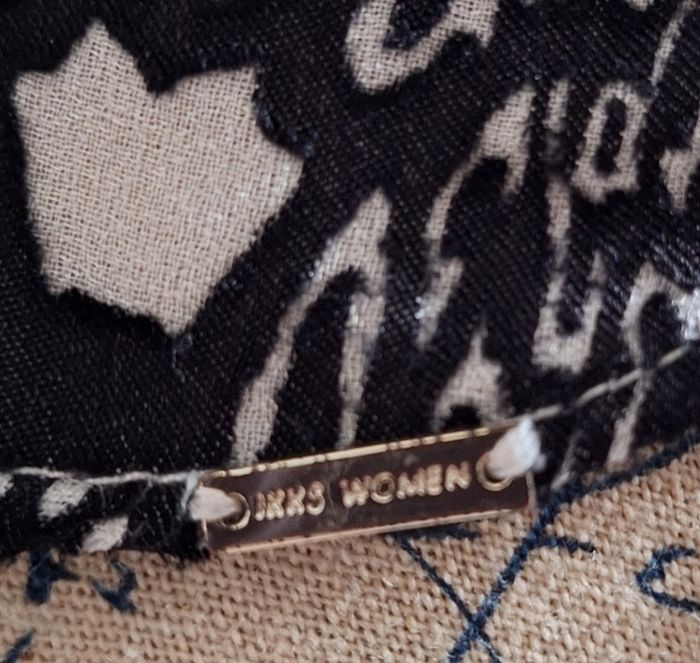 Superbe blouse bicolore en viscose et polyester à manches longues aux poignets boutonnés, avec un petit col, deux pans à nouer devant et toute boutonnée au dos. Petite plaque métallique de la marque devant à gauche. Très bel effet !