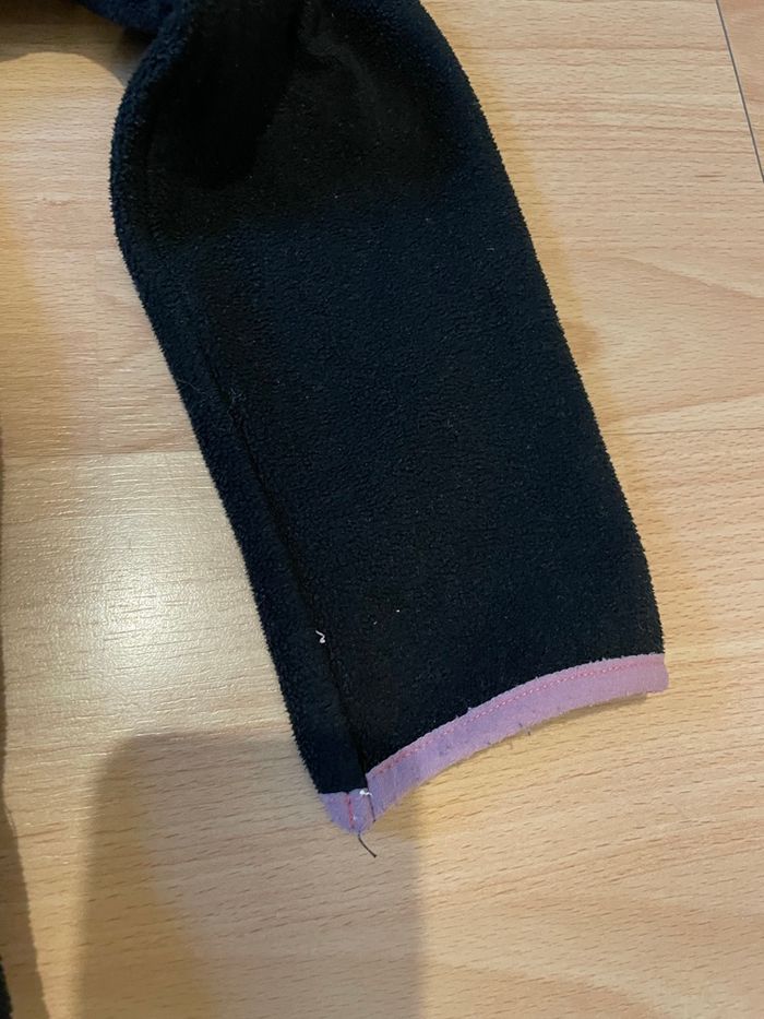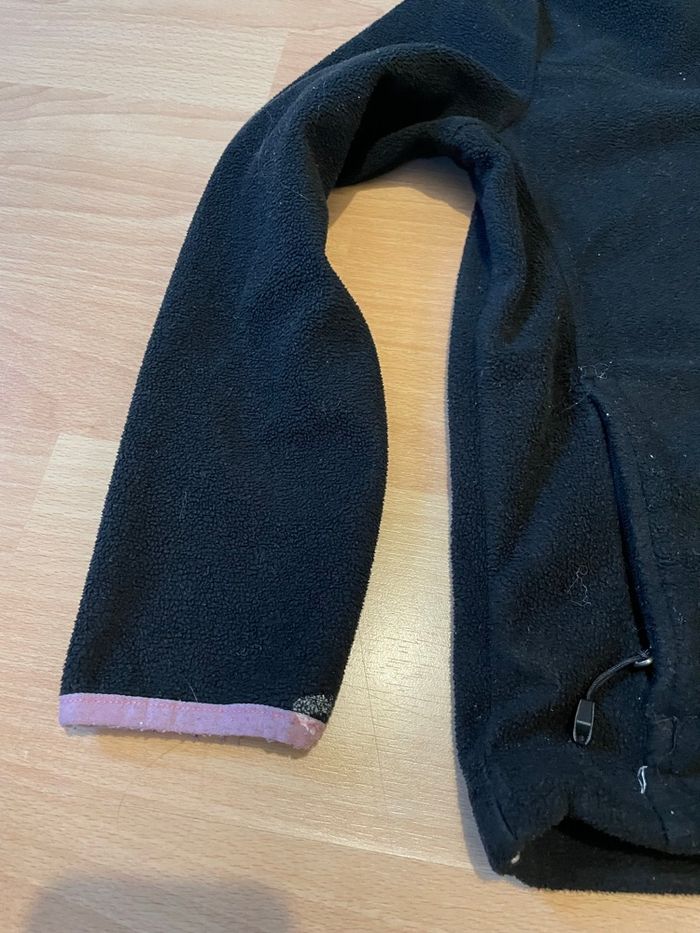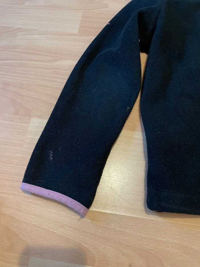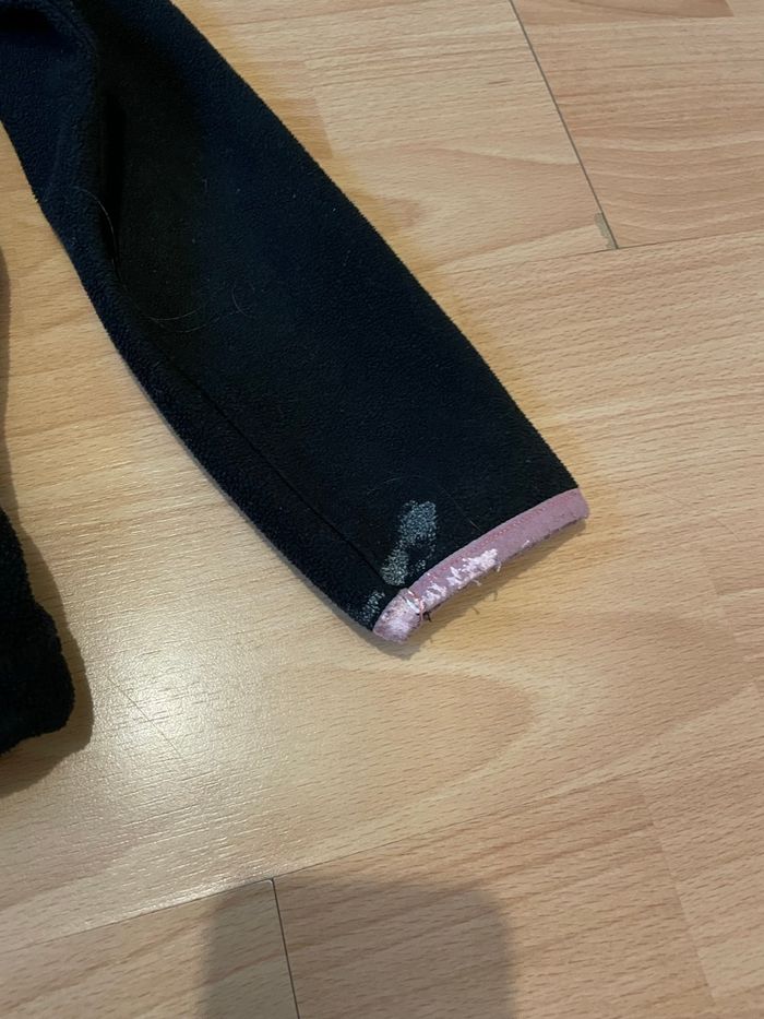 Gilet noir et rose pour les sur coutures Traces de peinture blanche au niveau des manches (cf photo) Taille 8 ans