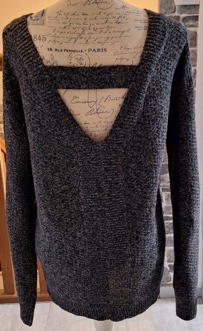 Long pull gris chiné au dos ouvert - photo numéro 1