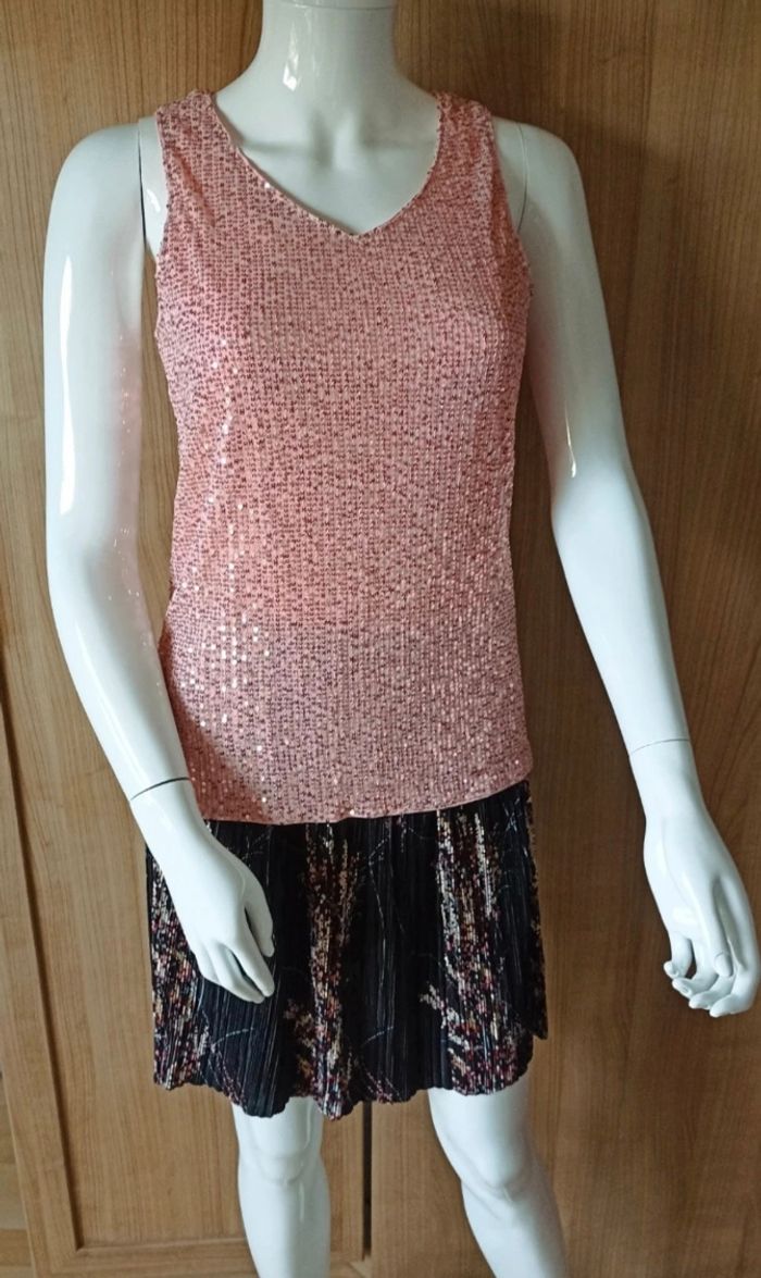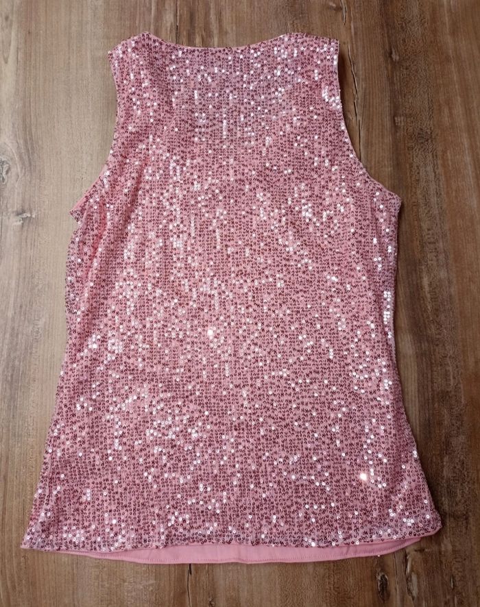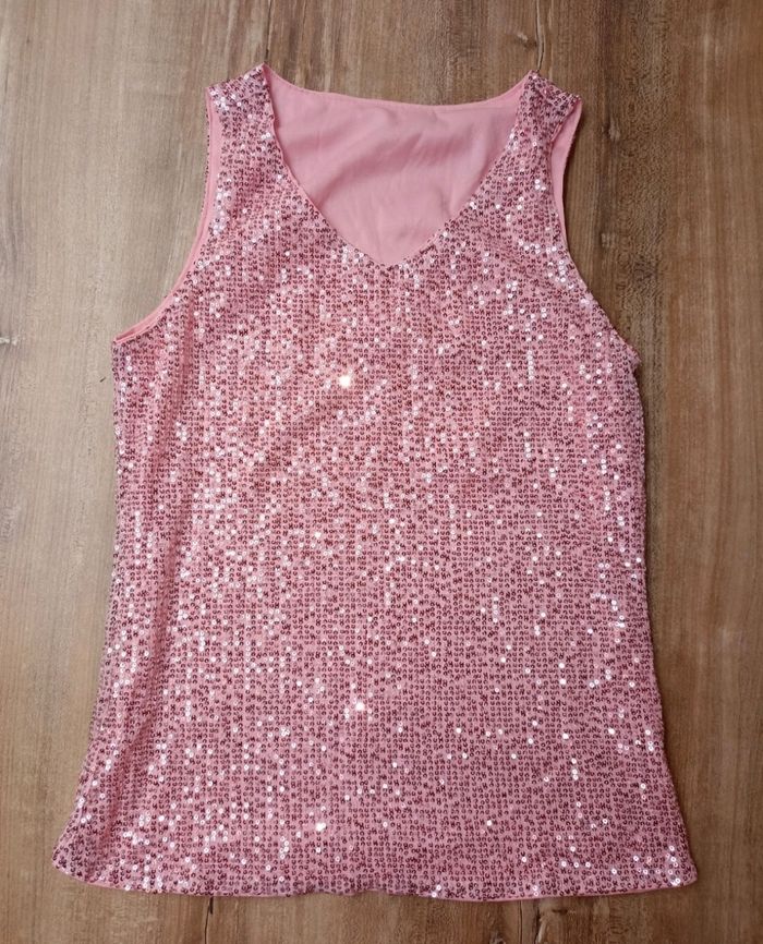 Donne une touche glamour à ta tenue avec ce joli top rose entièrement recouvert de sequins. Parfait pour une soirée, un événement, ou pour ajouter un peu d’éclat à ton look du quotidien ✨💖