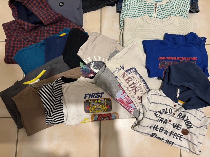 À vendre lot de 20 vêtements hiver garçon en 4 ans et en bon état, plusieurs marques comprenant :