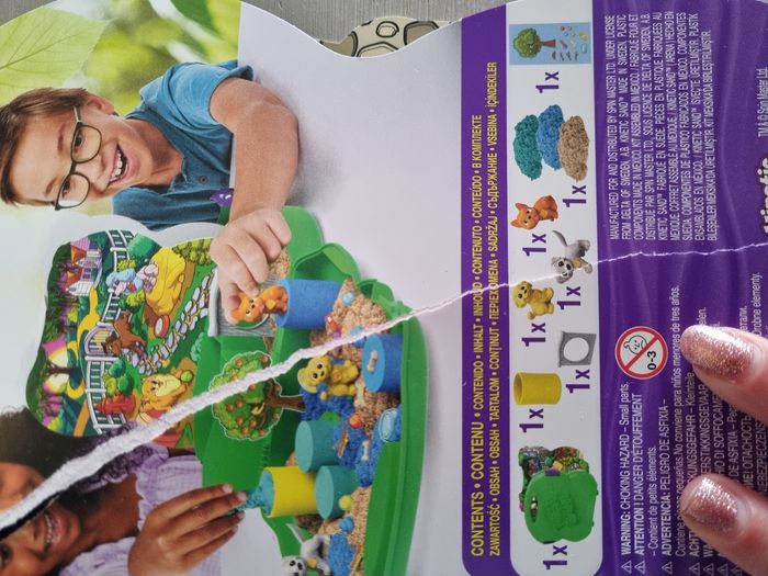 Kinetic Sand sable magique parc à chiots L'emballage carton à été déchiré lors de l'ouverture du papier cadeau Le jeu n'intéresse pas nos enfants Complet