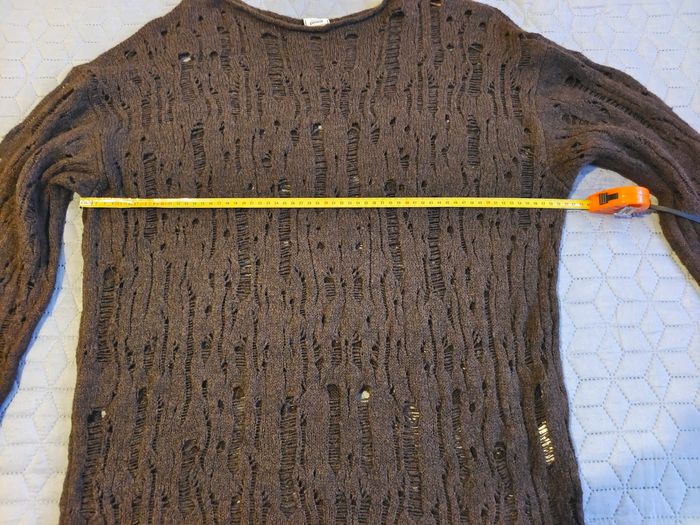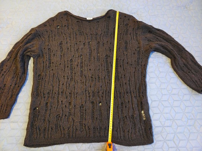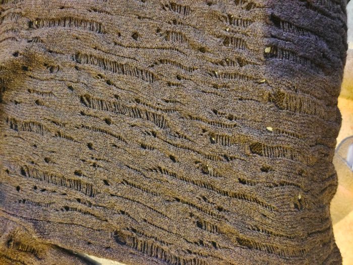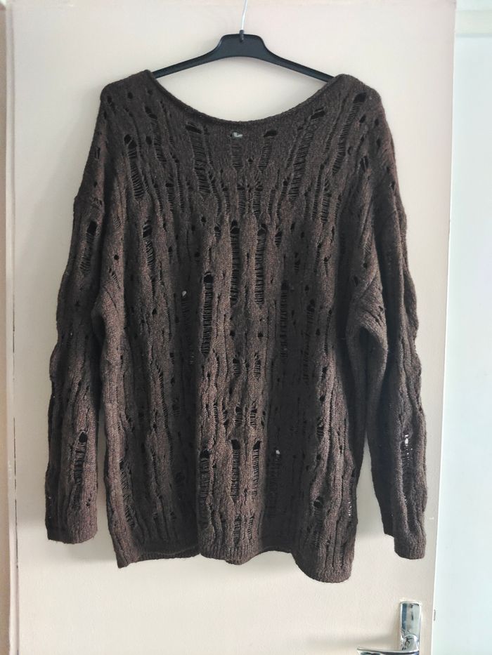 Je vends ce pull en maille ajourée marron foncé de la marque Pimkie.