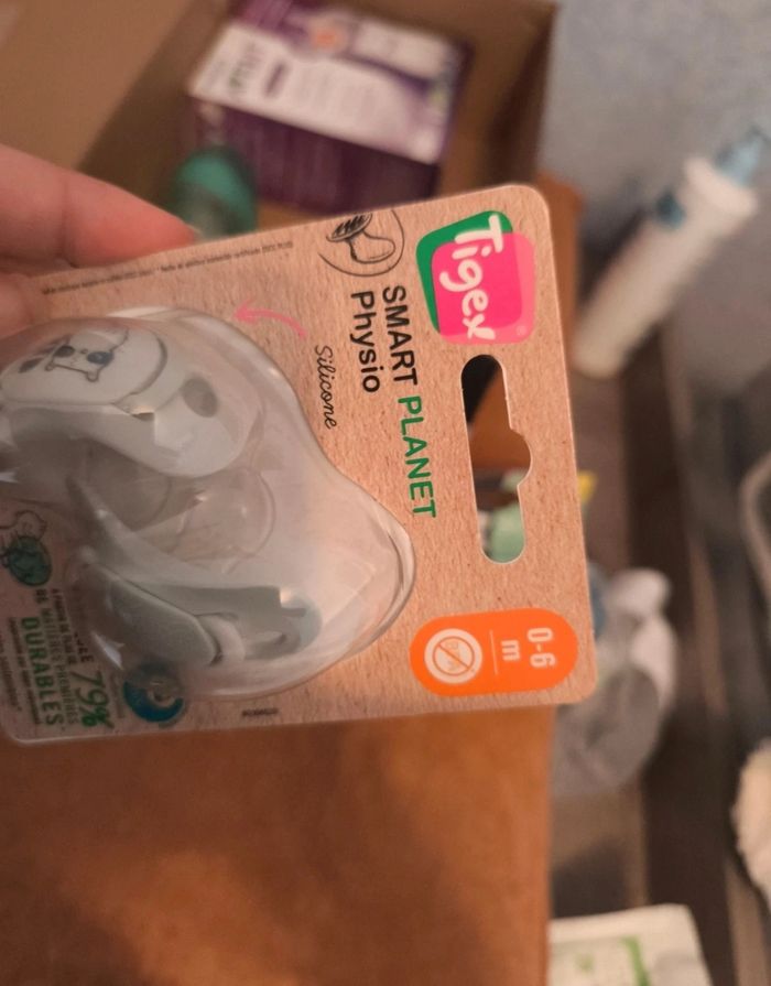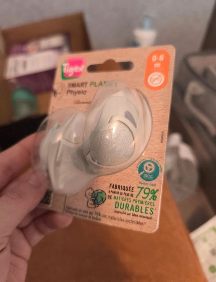 Lot de 2 sucettes de la gamme smart planet physio neuves dans leur boîte, jamais ouverte. Motif raton laveur pour une et petite feuille pour l'autre.