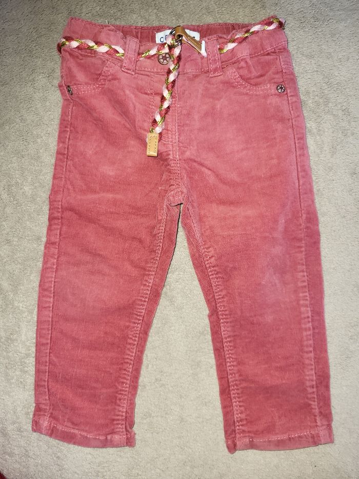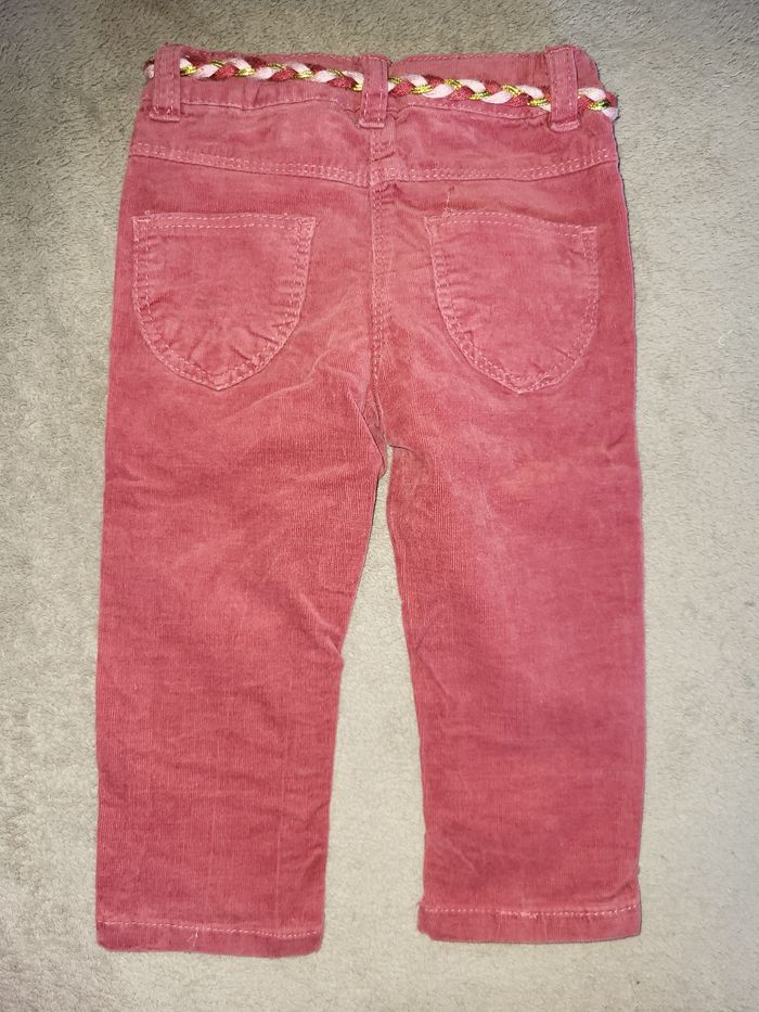 Pantalon velours ras tirant sur le rouge bordeaux Creeks Avec sa ceinture assortie tressée en rose, bordeaux et doré Peu porté #virgy61fille12mois