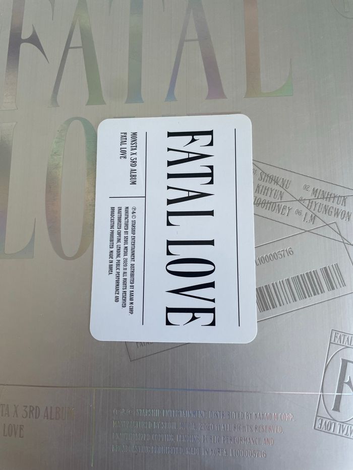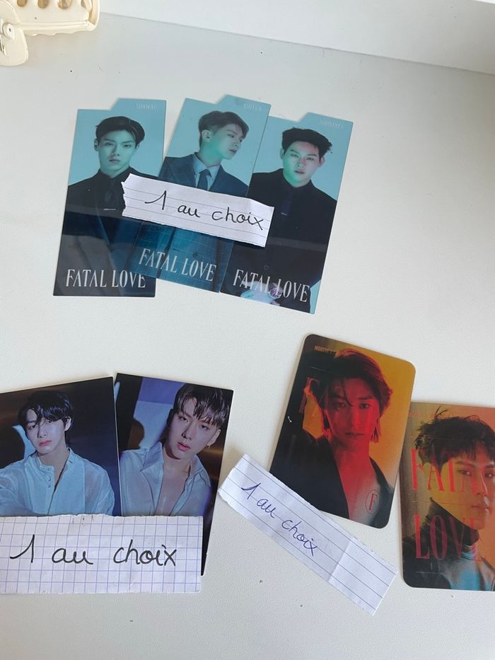 vnted et leboncoin : woosanra beebs : floraritz 📓 album Fatal Love 👥 MONSTA X #woosanraMONSTAX 🗂️ version 4 📔 complet avec photocard pc Minhyuk. Vous pouvez choisir le reste des inclusions : - pc lenticular ✅hyungwon ✅ jooheon - pc hidden message card : ✅ hyungwon ✅ kihyun - index card : ✅ jooheon ✅ shownu ✅kihyun 🔎 très bon état ➕ version 3 disponible dans mon dressing