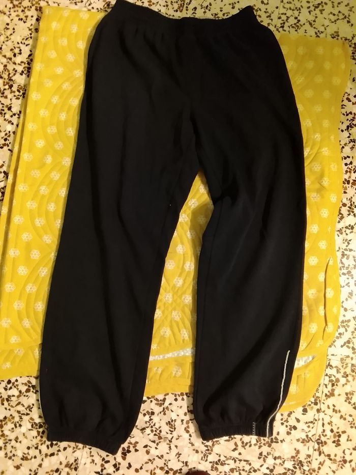 Bonjour, très beau pantalon a offrir pour Noël de la marque Domios en taille L en noir avec deux poches devant. Elastiquer en haut de la taille. ,50% coton, 50% polyester . En très bon état et sans étiquette : hauteur jambe: 105cm, Largeur : 33cm. Pensez à vos cadeaux de fin d'année.
