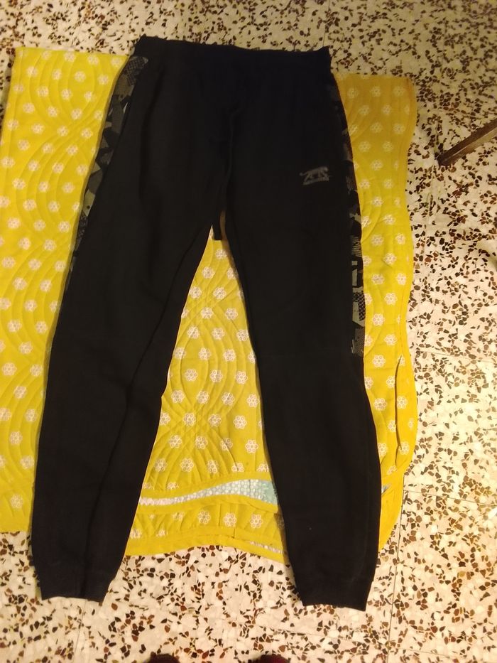 Bonjour, très beau pantalon a offrir pour Noël de la marque Airness en taille 2 XL en noir avec une bande de motif sur les cotes. Elastiquer en haut de la taille. 60% coton , 40% polyester. En très bon état et sans étiquette ; hauteur jambe: 104cm, Largeur : 28cm. Pensez a vos cadeaux de fin d'année.