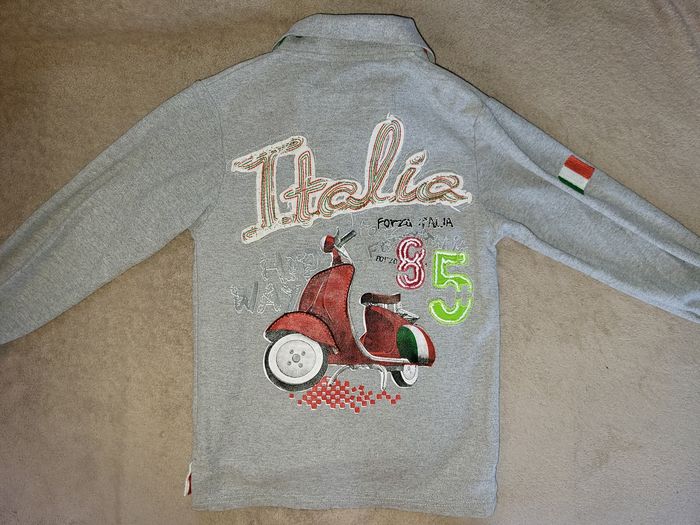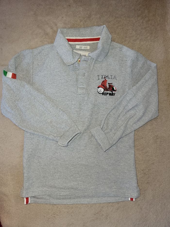 Polo manches longues gris clair Hip way Italia Motifs drapeau Italie scooter #virgy61garcon6ans