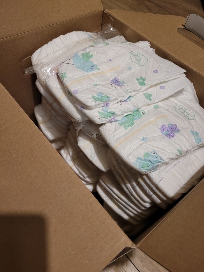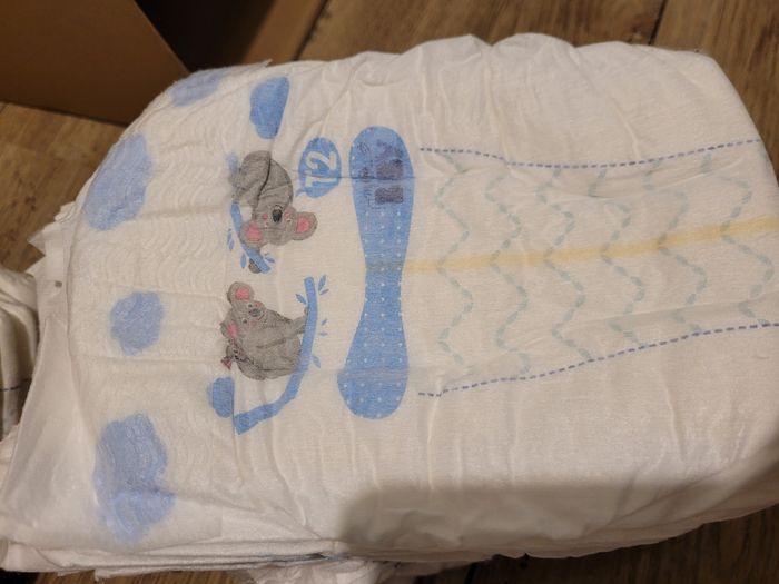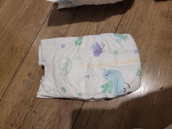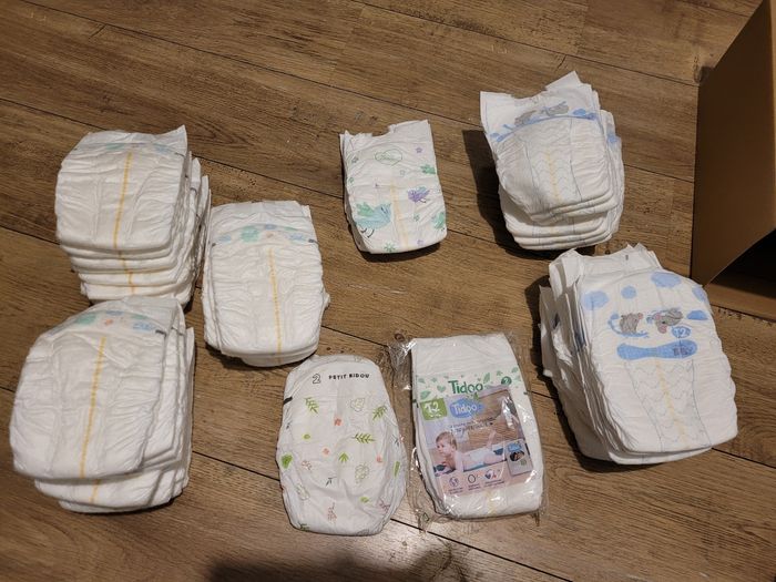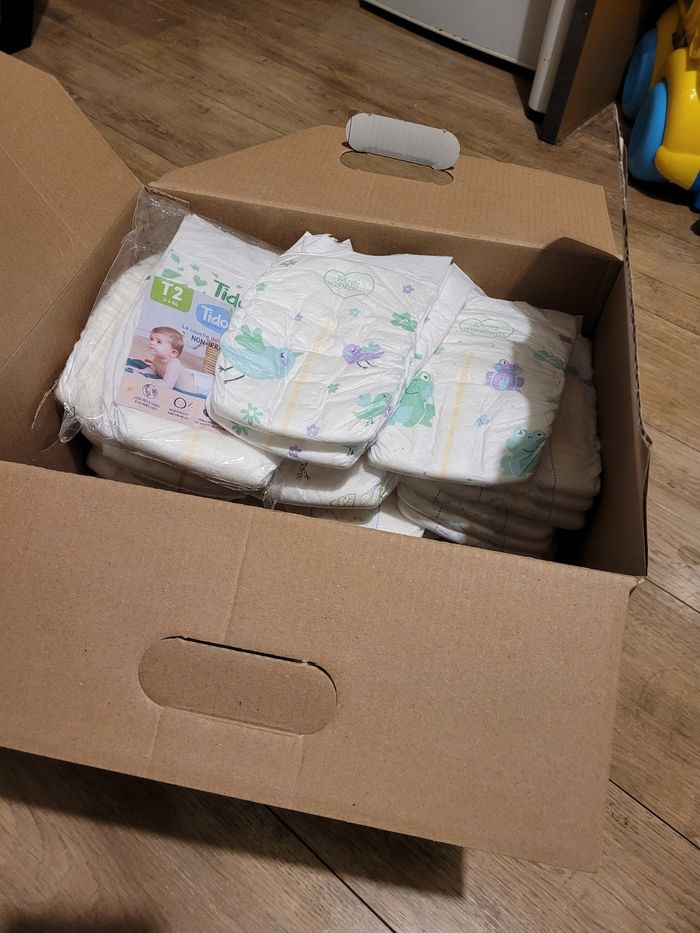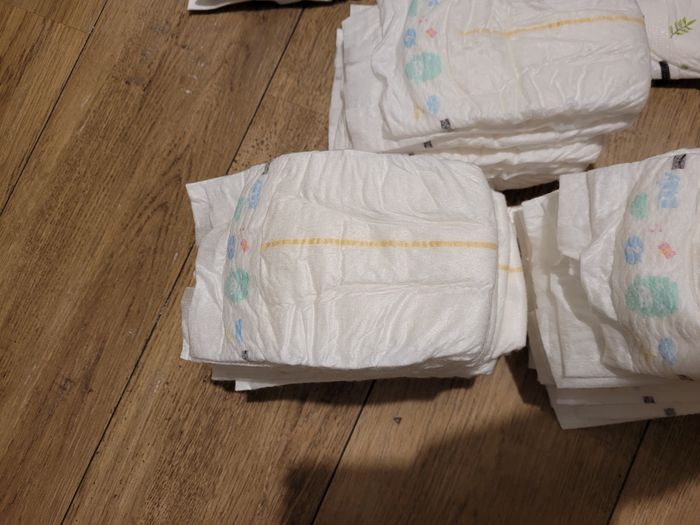 40 couches carrefour Baby avec l' indicateur couleur qui indique qu1nd uo faut changer la couche.