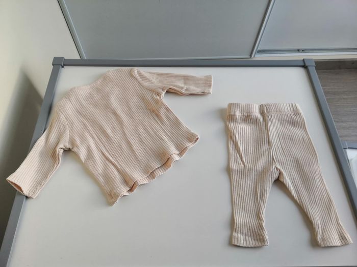 Ensemble côtelé 2 pièces (tee-shirt + legging, beige) 3 mois Kiabi - photo numéro 1