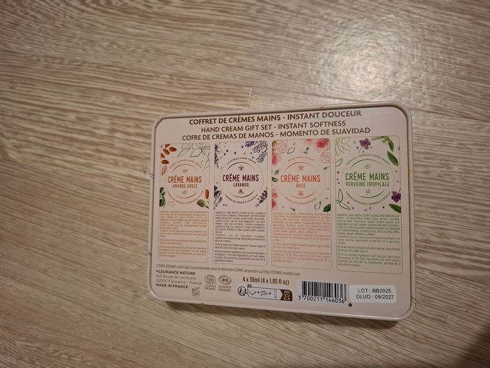 Coffret comprenant 4 crèmes pour les mains (amande douce, lavande, rose, verveine tropicale) Marque Fleurance Nature (made in France - Bio) Neuf