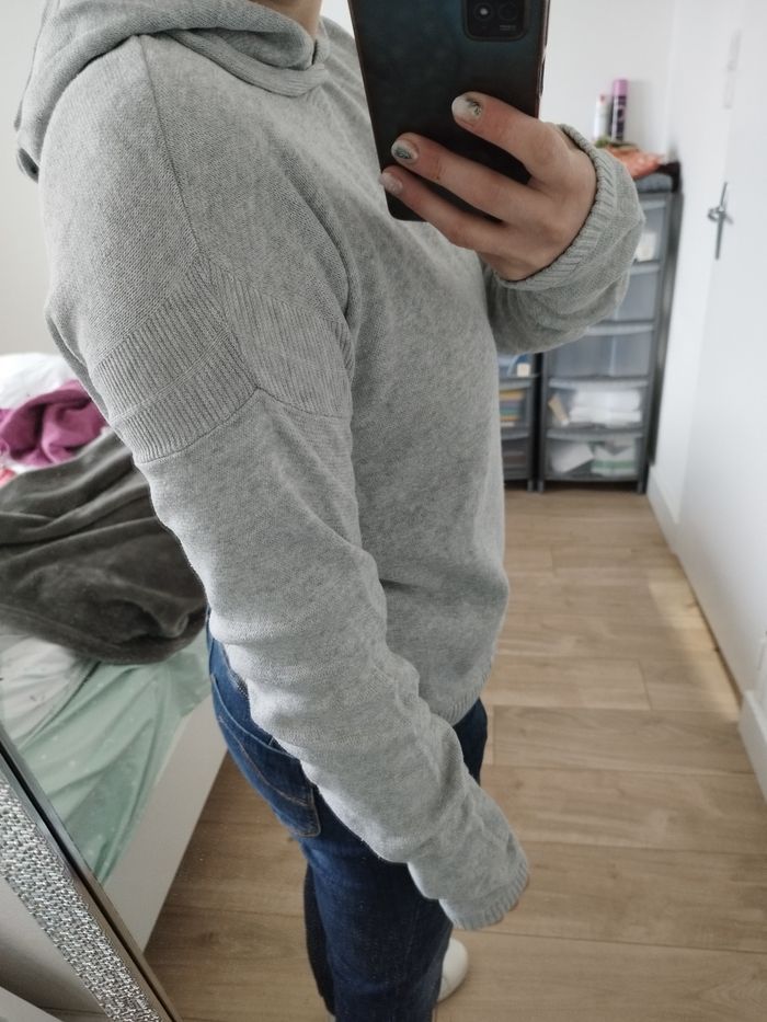 Vends sweat à capuche femme en très bon état ! Acheté à Camaïeu. Travaillé avec des motifs au niveau du col, sur le côté des bras, en bas des manches, en bas du sweat et sur la capuche. Peut se resserrer via l'élastique en bas. Taille : S