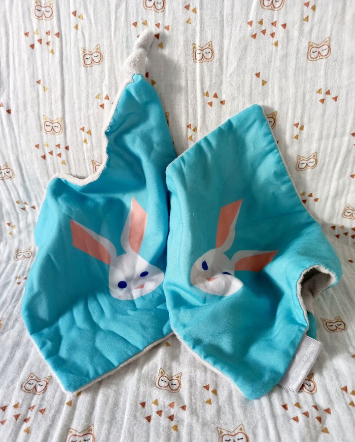 2 DOUDOUS PLATS AIR FRANCE LAPIN Gris BLEU Jamais servi