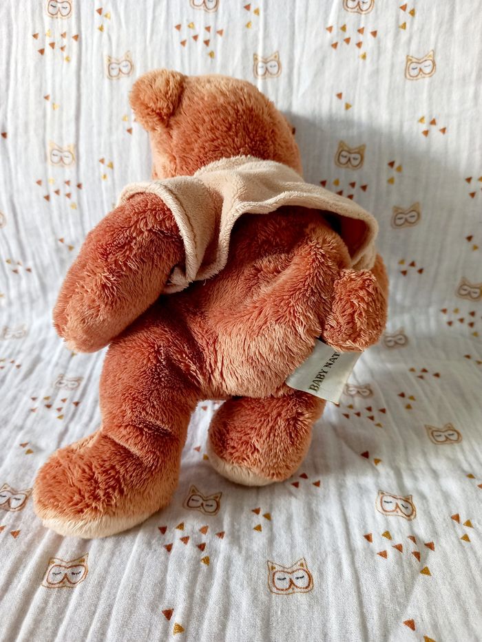 Doudou/peluche ours avec t-shirt beige, 25 cm environ Marque : Babynat Jamais servi 📪 Envoi rapide