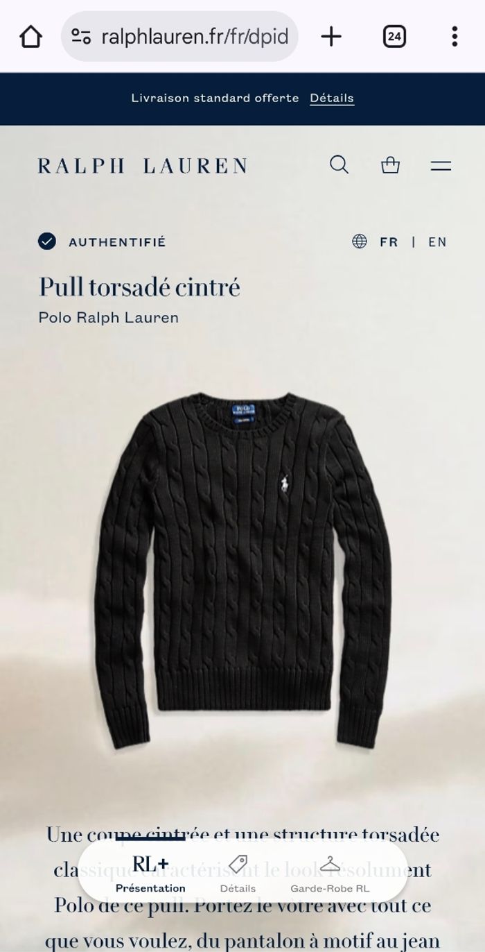 Pull Torsadé Ralph Lauren - Dernière Collection Avec QR Code - Taille S Femme - Excellent État