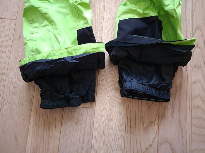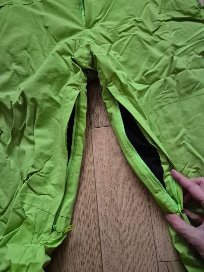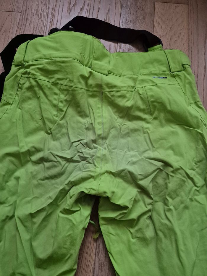 - Bretelles réglables et amovibles, bas avec pare-neige, poches zippées, scratch à la taille, aération au niveau des cuisses