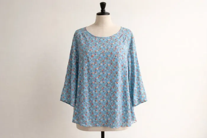 Blouse fluide à motif fleuri, coloris bleu ciel très lumineux 🌸