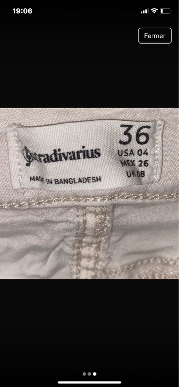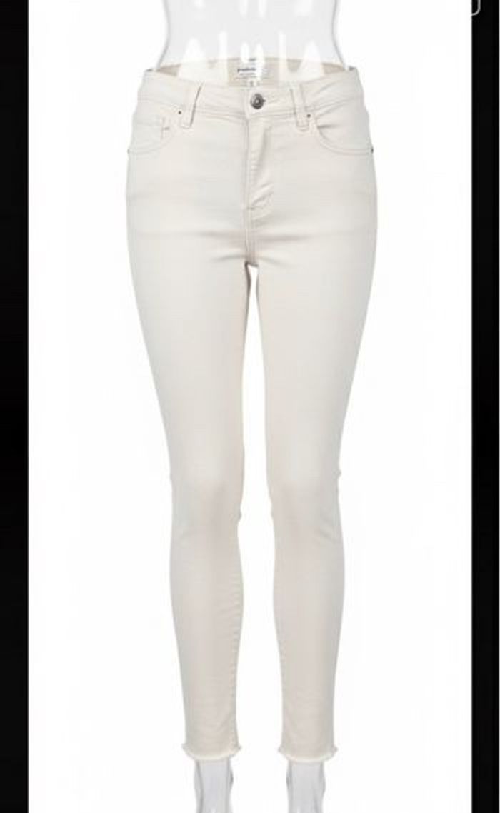 👖Jean skinny beige, coupe ajustée, Stradivarius, taille 36. Taille classique avec passants pour ceinture, fermeture zippée et bouton, deux poches avant et deux poches arrière. Matière légèrement stretch.