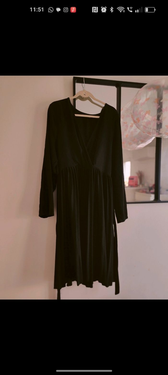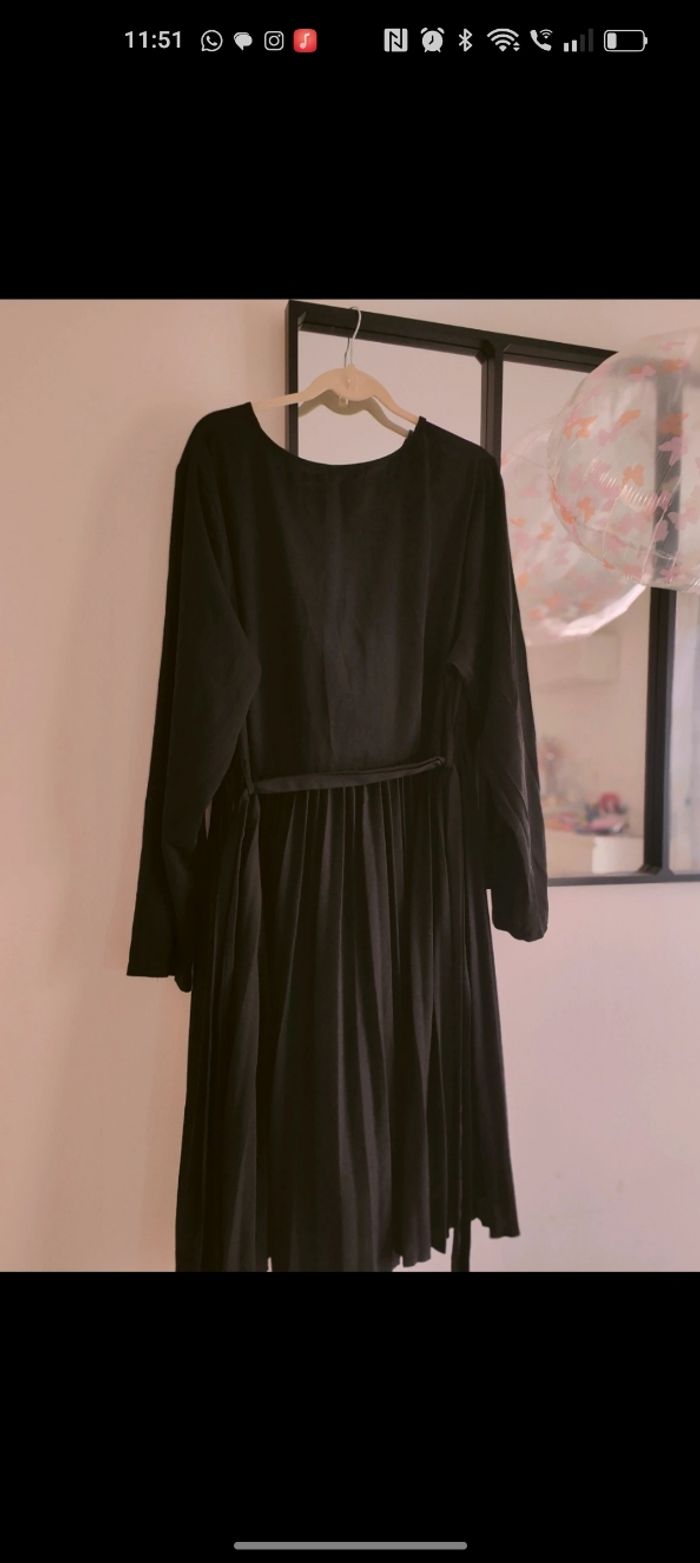 Robe plissée mi longue noire 50