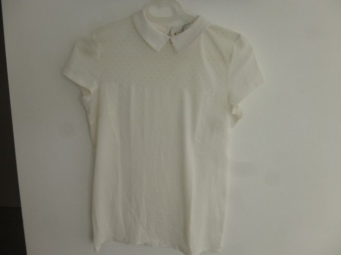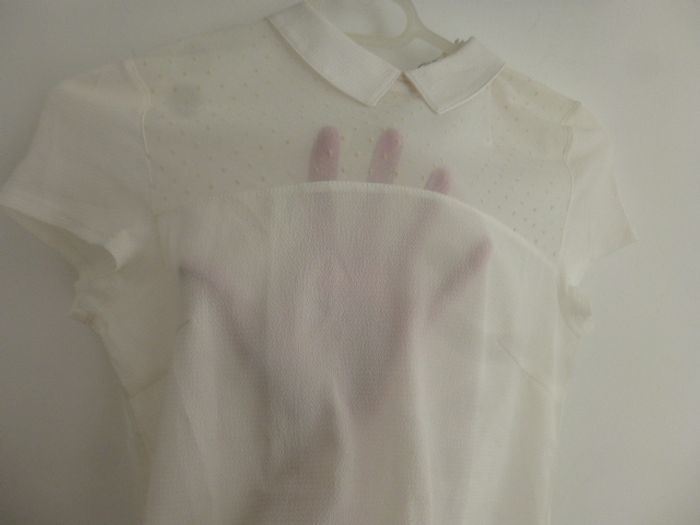 Top blanc col bateau avec dentelle à pois Naf Naf T36