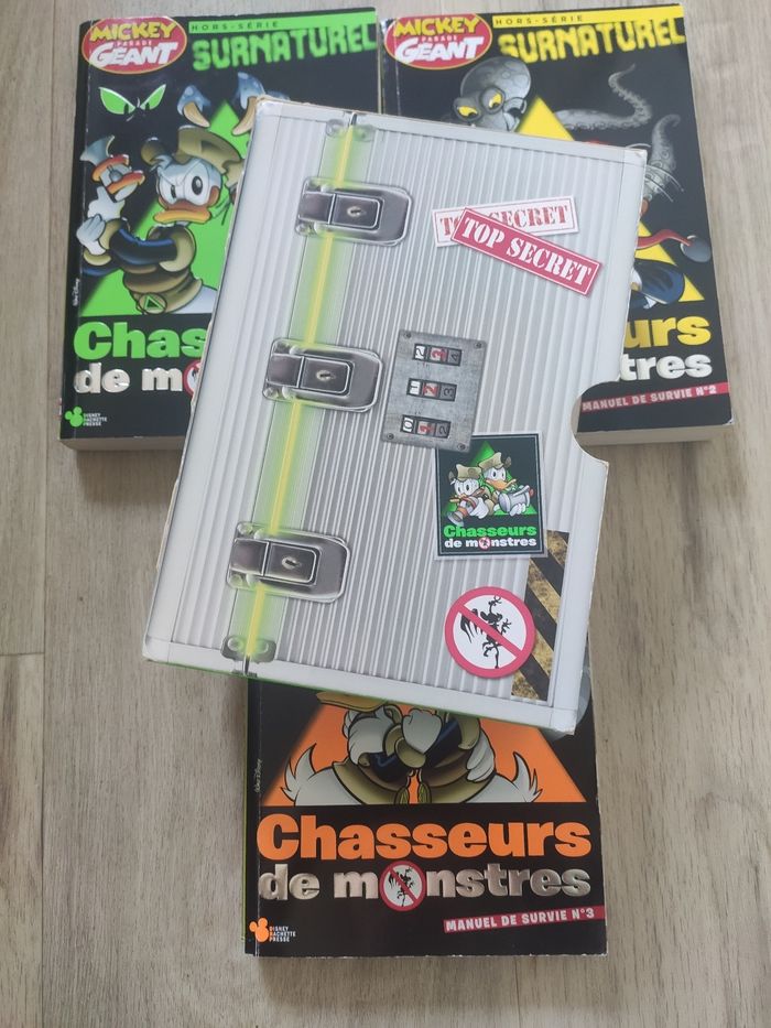 La trilogie surnaturelle avec trois volumes de Mickey parade géant chasseurs de monstres Les manuels de survie numéro 1, numéro 2 et numéro 3. Livres en bon état avec leur étui de rangement. Devenu rare maintenant !