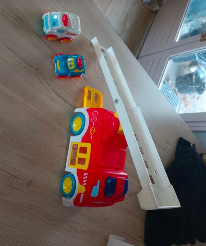 Camion pompier avec effet sonore avec 2 véhicules qui se mettent à l'intérieur