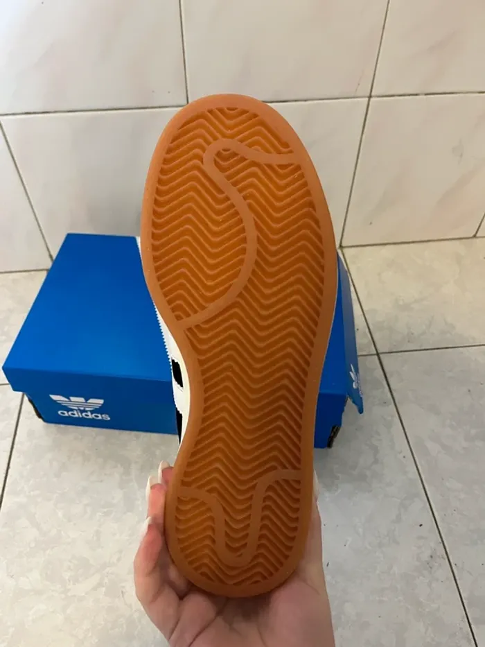 Français Modèle : Campus 00s Pointure : 38 Couleurs : Noir, Blanc État : 10/10, neuf avec étiquettes L’envoi est effectué dans les 48 heures suivant l’achat