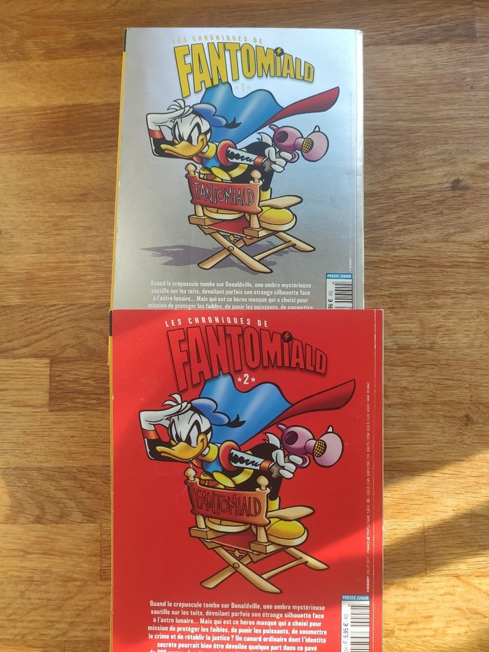 Les deux premiers tomes des Chroniques de Fantomiald, avec chacun 5 aventures complètes, 300 pages de BD dans chaque tome. Les premiers tomes sont devenus rares, surtout que les pages intérieures sont ici en très bon état, il n'y a que la couverture qui est un peu abîmée.