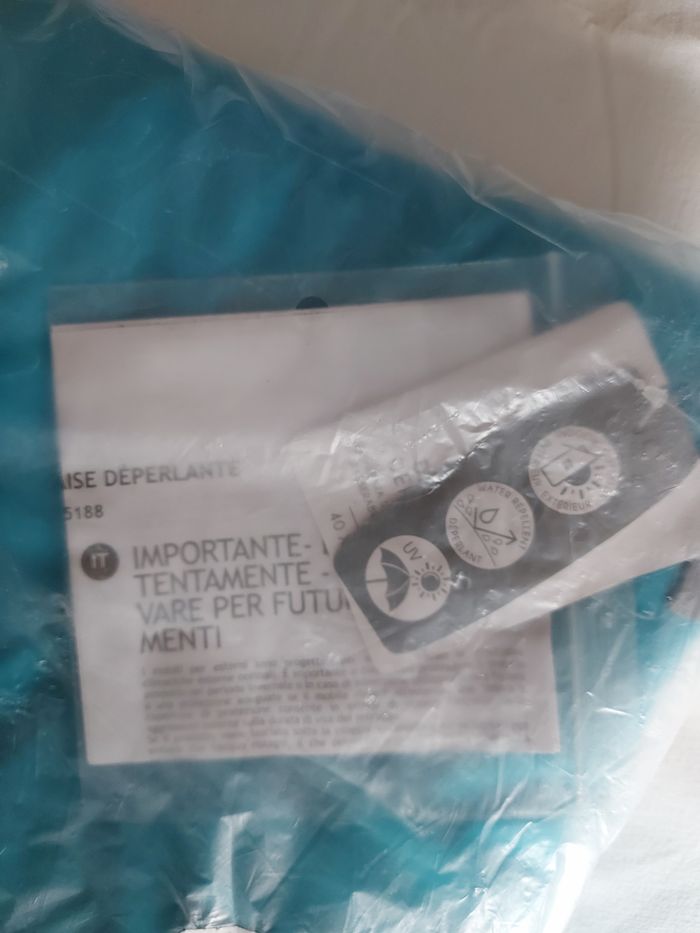 Galette de chaise sans attaches, déperlante, couleur bleu turquoise 40 x 40 cm Neuve emballée