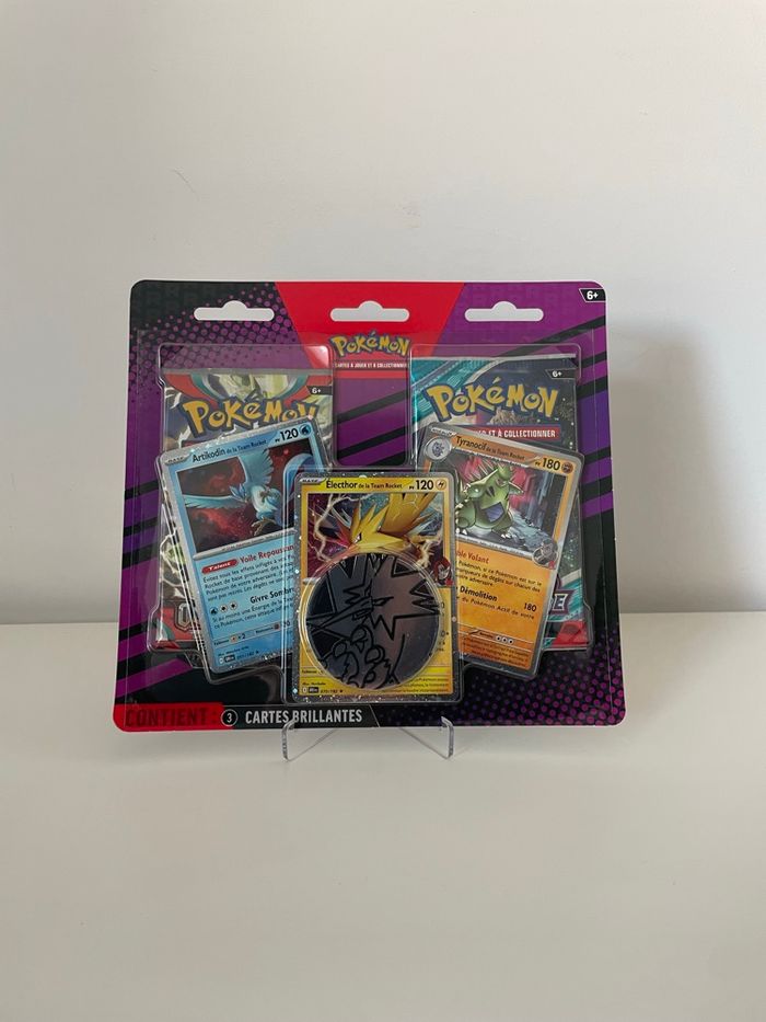 Bonjour je vends ce Duopack de la Team Rocket. Contenu : - 1 Booster EV03 (Flammes Obsidiennes) - 1 Booster EV06 (Mascarade Crépusculaire) - 3 Cartes Promo (Electhor, Artikodin, Tyranocif) Item neuf, scellé. Plusieurs disponibles sur demande. Envoie protégé et rapide 📦 Remise en propre sur Lyon ou alentours ✅ Chaque commande contient un cadeau 🎁 Pokémon, Cartes, Coffret, Écarlate et Violet, Booster, Bundle, Display, Tripack, Blister, Promo, tripack, mini tins, bundle, cartes pokémon, Collection, Pokemongo, Dracaufeu