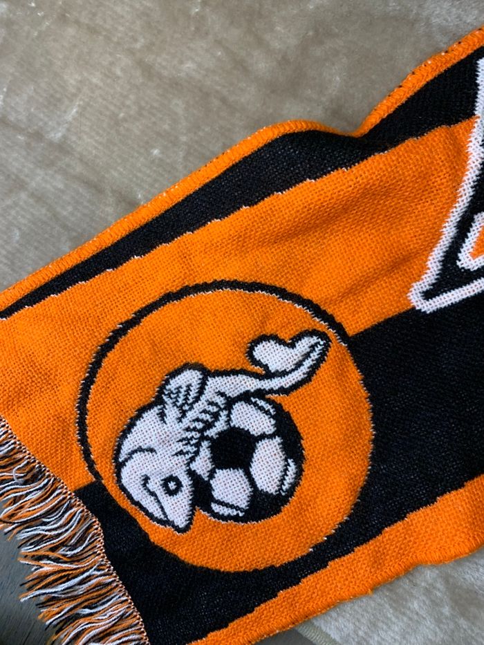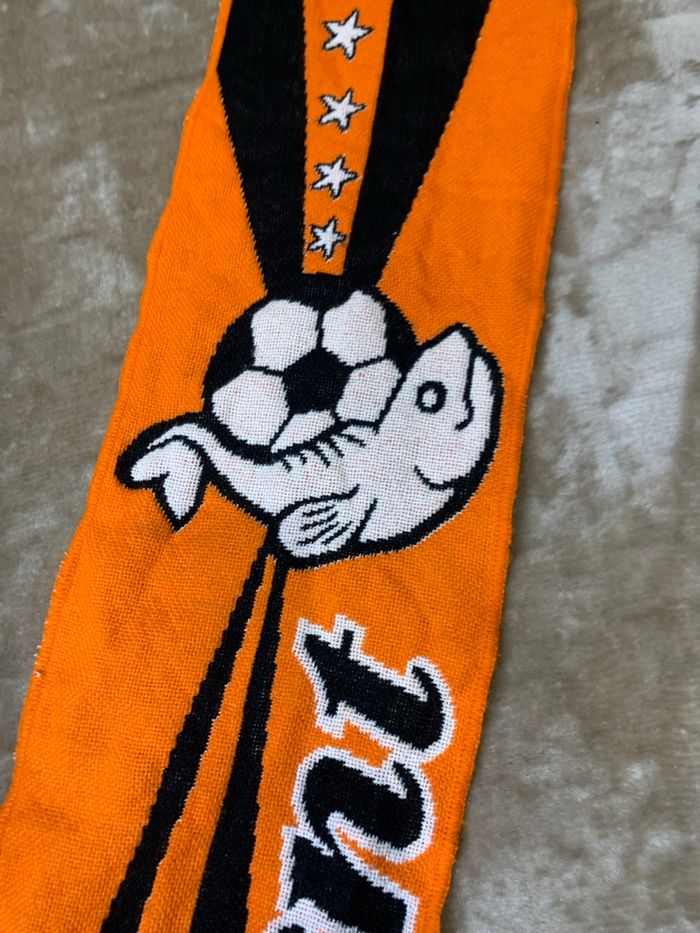 Je vends cette écharpe aux couleurs du FC Lorient, en coton. - Type de produit : Écharpe - Matière : Coton - Couleur : Orange - Univers : Mixte Très bon état N'hésitez pas à me contacter pour plus d'informations.