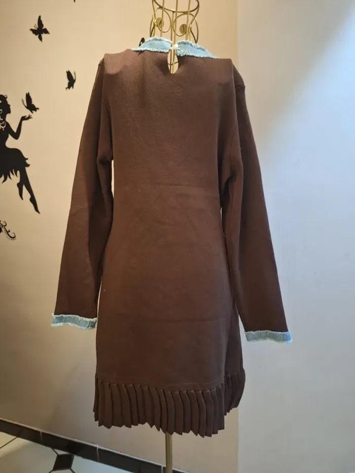 Robe pull marron & jeans - photo numéro 1
