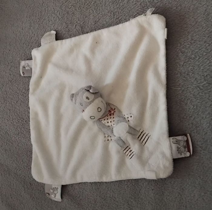 Doudou carré plat blanc - vache sur le doudou - Noukie 'S