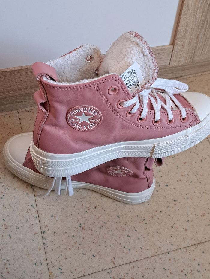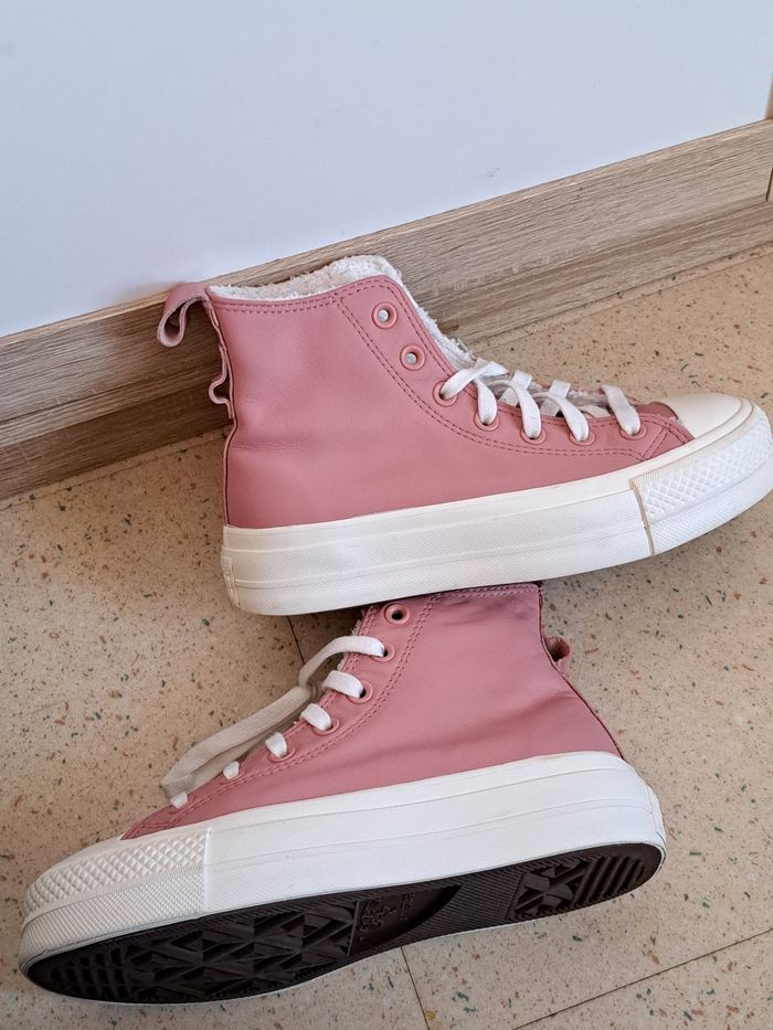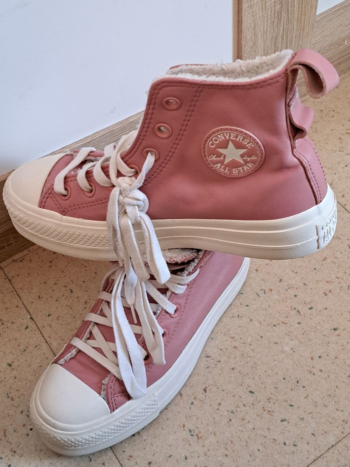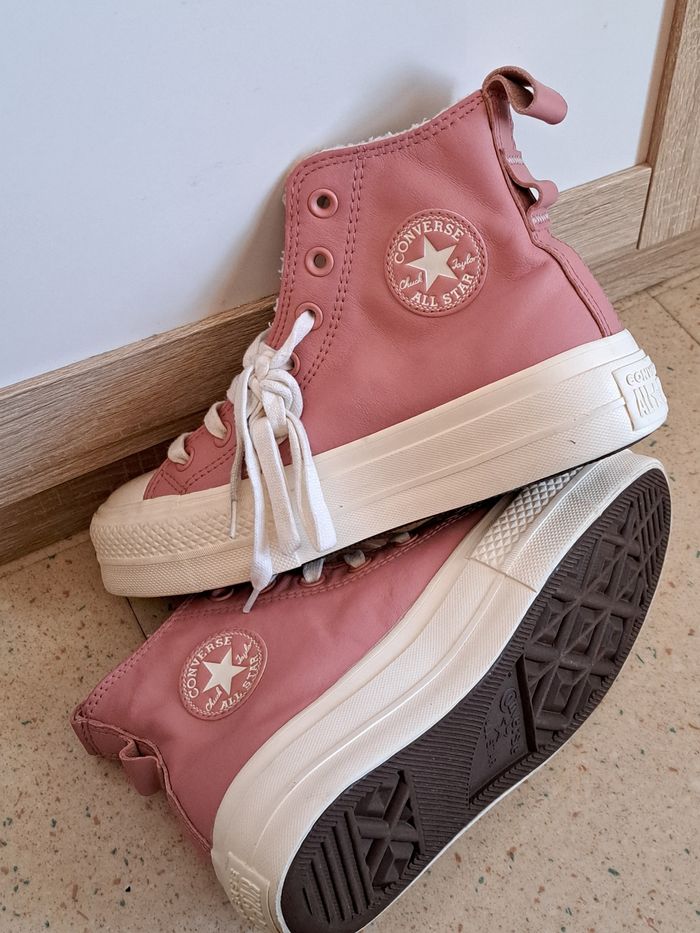 Converse all star moumoute taille 36,5 très bonne état très peu utilisée comme neuf Chaussure montante avec plate-forme C’est chaussures sont parfaites pour l’hiver, il y a de la moumoute à l’intérieur ce qui tient chaud