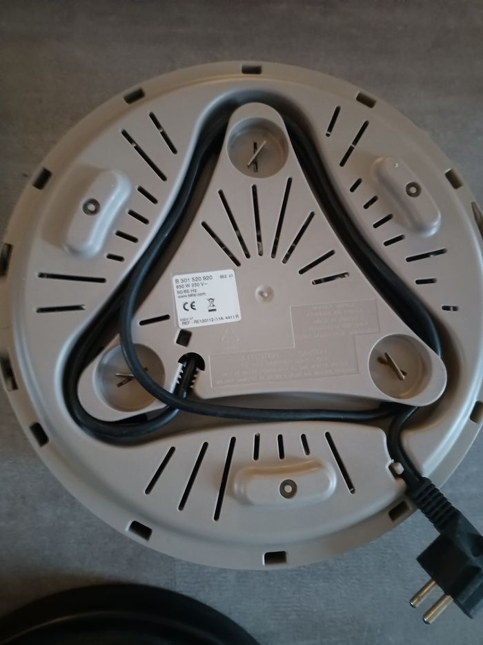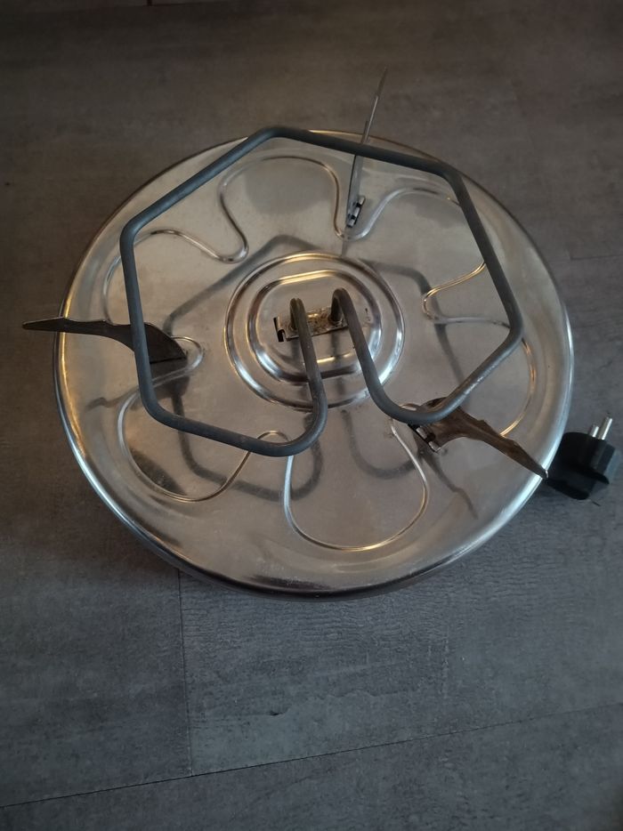 A bien vécu mais encore fonctionnel. Vendu avec ses 6 poêlons. Pas de bouton On/Off, s'allume dès qu'il est branché. Envoi possible