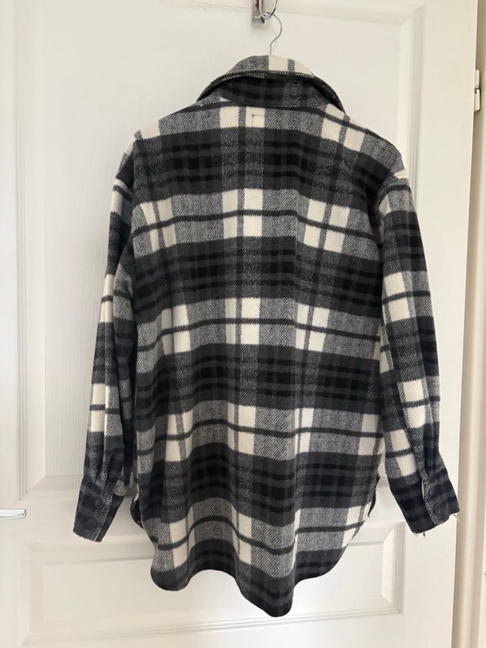 Veste chemise chaude à carreaux noir et blanc « H&M » taille M,très peux portée, TBE Largeur épaule 58 cm Largeur (mesure prise sous les aisselles) 58 cm Longueur avant 72 cm Longueur arrière 77 cm